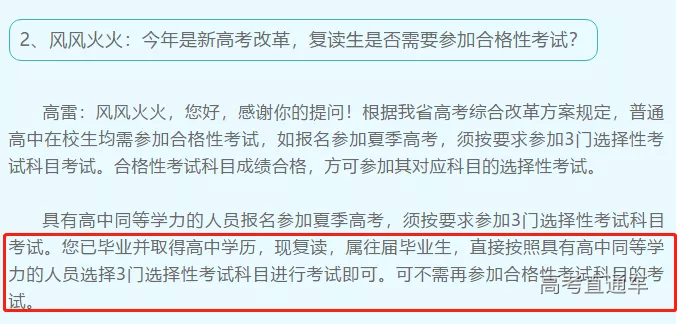 广东省教育考试院发布的公文, 公文指明 密密麻麻一堆字看不懂? 高中菌直接上个图吧~简单明了 根据官方录取工作规定,高考录取和学考录取等统一招生考试对学考等级成绩的要求基本上是统一的。比如【2020年】热门专科深职院,对学考等级要求是1C2D,冷门民办院校对学考等级的要求也是1C2D,几乎不会有“区别对待”。 中山大学2020年综合评价录取学考等级按AAA对应100分、AAB对应50分计入综合成绩;深圳职业技术学院在2019高职自招中要求学考等级3门科目均须达到C以上(而其他院校都是3D)。 因此高中菌建议同学们可以结合自身的升学渠道/实际成绩水平并咨询学校老师的意见,来决定要不要参加补考~(ps:11月13日起就要开始报名了,大家抓紧时间哦!) 另外针对复读生是否需要参加合格性考试,省教育考试院考试招生处处长高雷给出答复