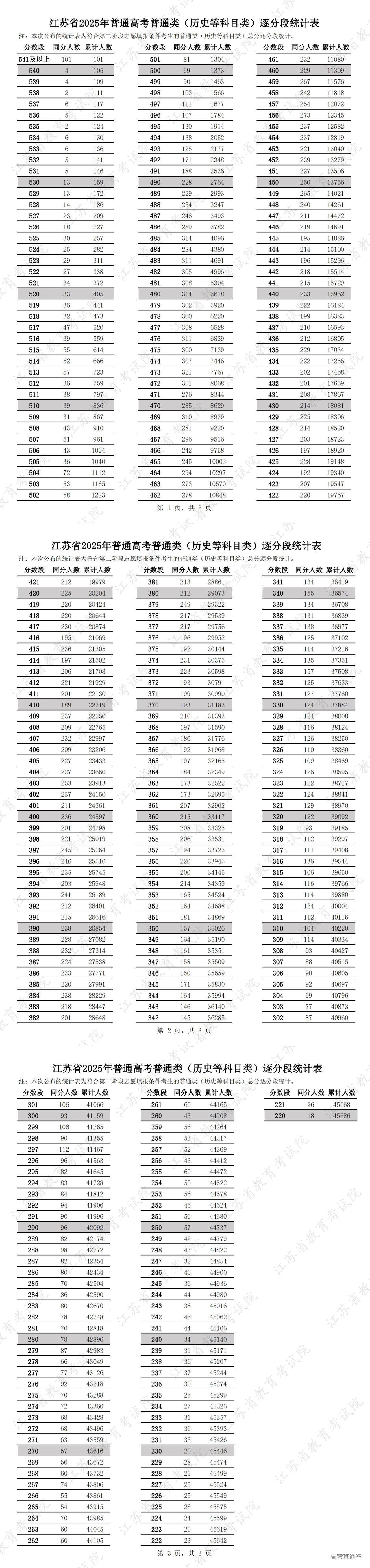 江苏2025年普通高考第二阶段逐分段统计表(普通类历史)