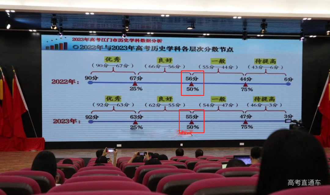 9月江门市高三历史科高考备考动员会上,公布了江门市近两年的历史学科高考情况:2023年平均分55分,2022年平均分56。