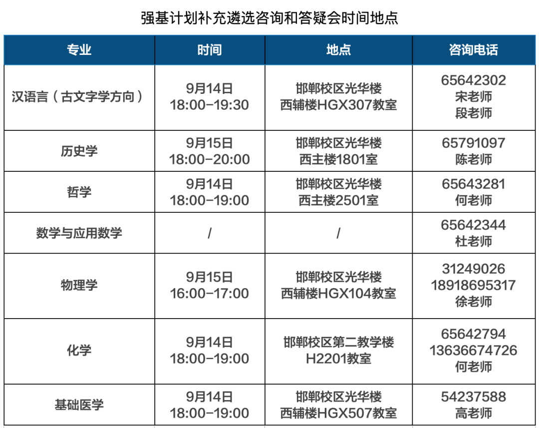 强基计划补充入选名单确定并公示后,入选学生的学籍及相关信息将由学校统一予以变更,学校不再接受学生退回原专业(类)的申请。本次补充入选的学生,后续的培养措施等与前期直接通过强基计划录取的学生完全相同。学校对强基计划学生制定单独人才培养方案和激励机制,增强学生的荣誉感和使命感。学校将为强基计划学生配备一流的师资,提供一流的学习条件,创造一流的学术环境和氛围,实行导师制、小班化等培养模式。对于学业优秀的学生,将在本硕博衔接培养、公派留学、奖学金等方面予以优先安排。同时,建立阶段性考核和动态进出机制。🔹 学生报名时填写的信息将作为考核参考材料,无需递送纸质材料。🔹 对于报名材料造假或在考核中舞弊的学生,将取消强基计划补充遴选的报名、考核和入选资格,并按照教育部和我校有关规定进行处理。🔹 视疫情防控情况,考核方案或作相应调整,另行通知。🔹 基础医学专业的强基计划学生原则上本科阶段不得转专业;其他专业的强基学生原则上本科阶段不得转到强基计划招生之外的专业就读。🔹 学校未委托任何个人或中介机构组织开展包括强基计划在内的各项考试招生,不举办任何形式的培训活动。(一)复旦大学强基计划补充遴选工作由学校强基计划专项工作领导小组统筹管理有关工作。(二)复旦大学在强基计划补充遴选的过程中做到机会公平、程序公开、结果公正。(三)复旦大学强基计划补充遴选工作全程接受复旦大学监察处监督。021-6564 2601,jiancha@fudan.edu.cn