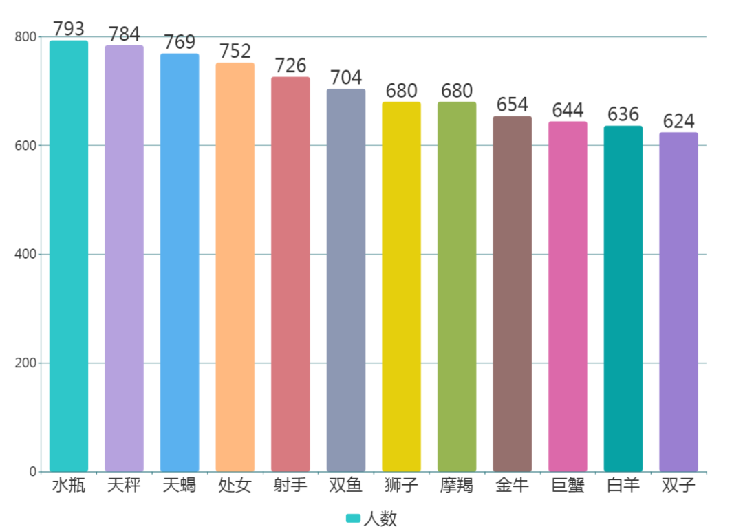 今年的新生中, 水瓶座扛起了星座人数最多的大旗! 接下来是天秤座和天蝎座, 听说同一个星座的人缘分更浓, 快来看看有多少人和你的星座一样的吧!