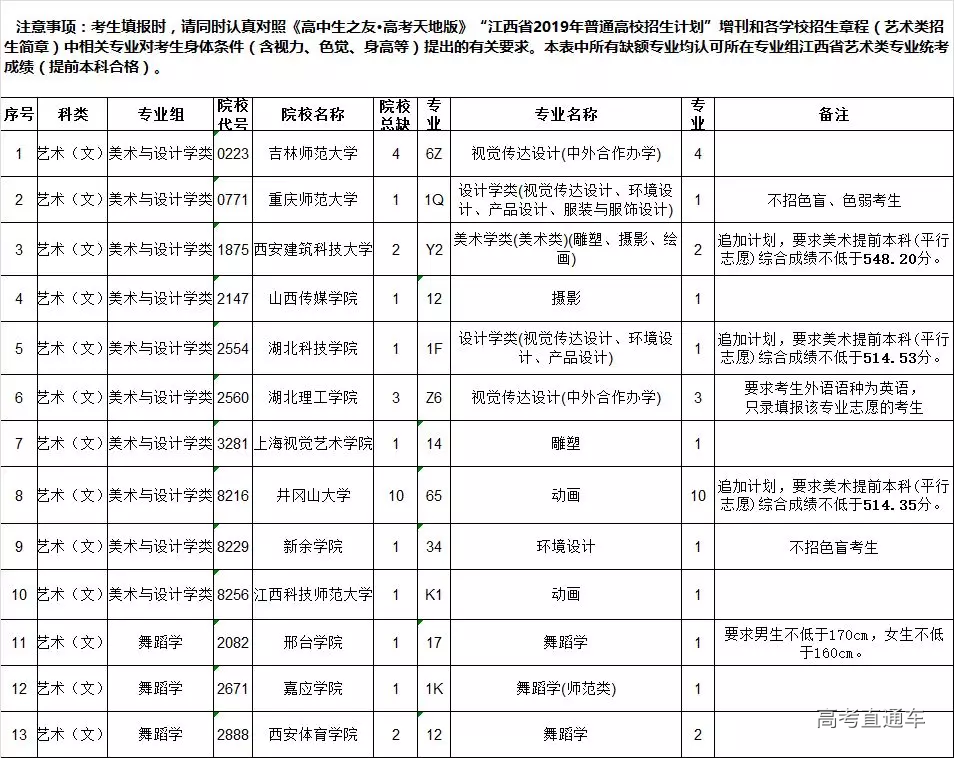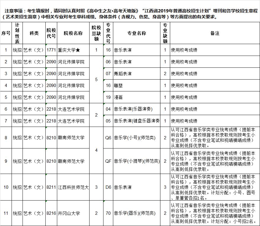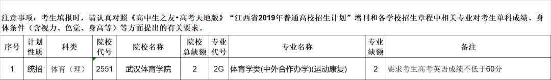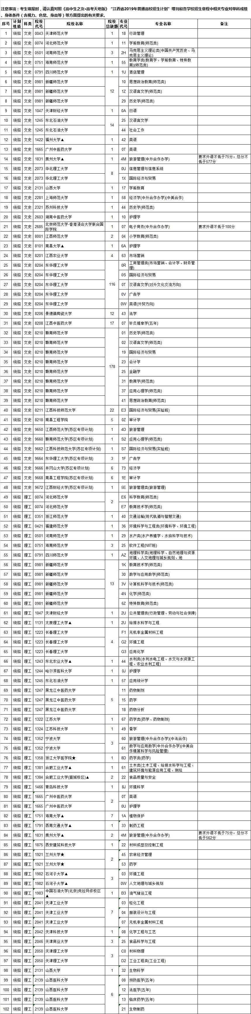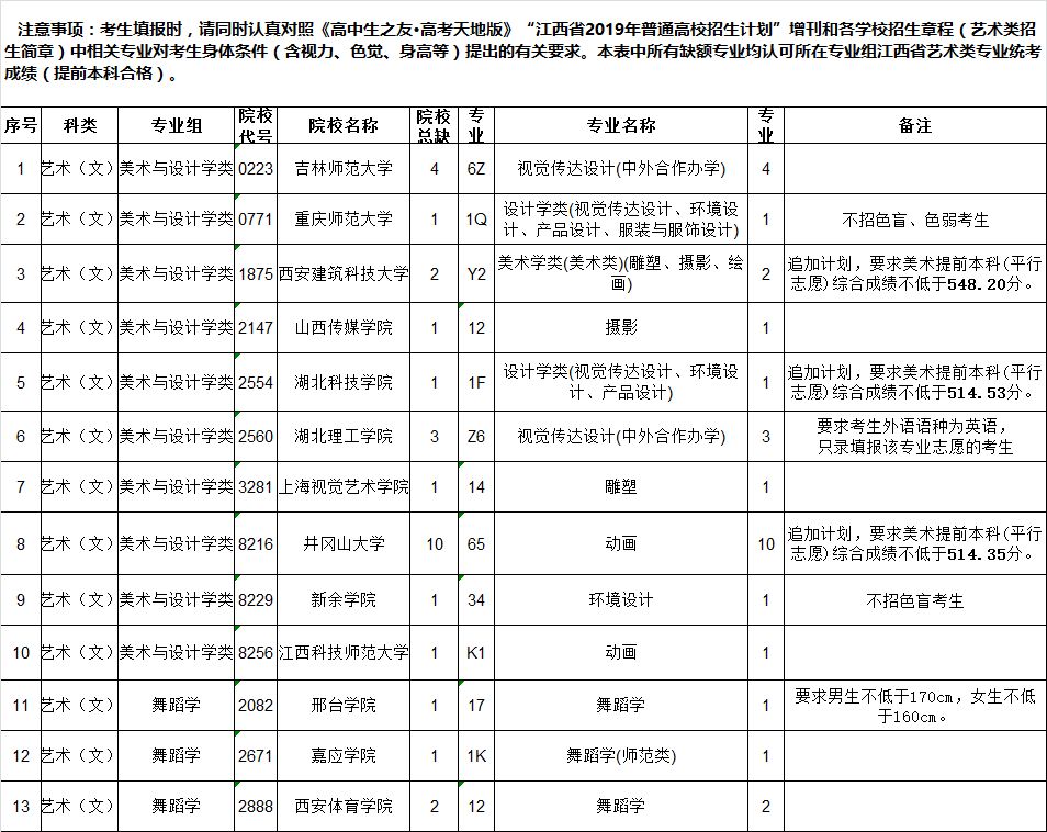 江西省2019年普通高校招生 提前批本科缺额院校及专业统计表 (统招艺术类单志愿第二次征集) 点击查看大图 江西省2019年普通高校招生 提前批本科缺额院校及专业统计表 (艺术类平行志愿征集) 点击查看大图 江西省2019年普通高校招生 第一批本科文史、理工类缺额院校及专业统计表 点击查看大图 江西省2019年普通高校招生 第一批本科体育类缺额院校及专业统计表