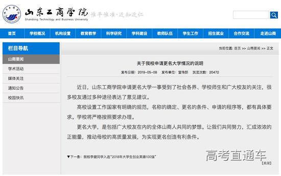 5月8日,学校官网发布关于申请更名大学情况的说明↓↓↓