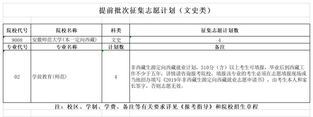此外,相应批次线下20分考生也可填报提前批征集志愿。非西藏生源定向西藏就业计划相应批次线下40分考生可填报,具体要求请咨询招生院校。填报后考生应立即与家长一起前往当地招生考试机构签订《2019年非西藏生源定向西藏就业志愿申请书》,否则所报志愿无效。