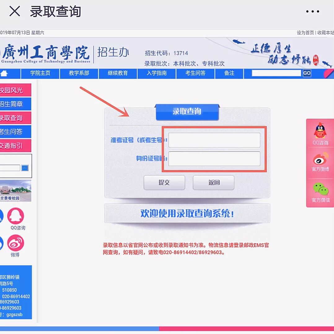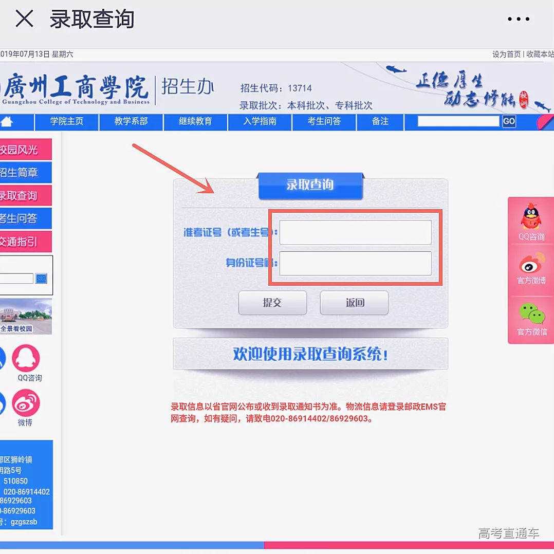 录取通知书具体寄出时间 与 我院对各省录取结果 敬请关注广州工商学院招生办微信公众号