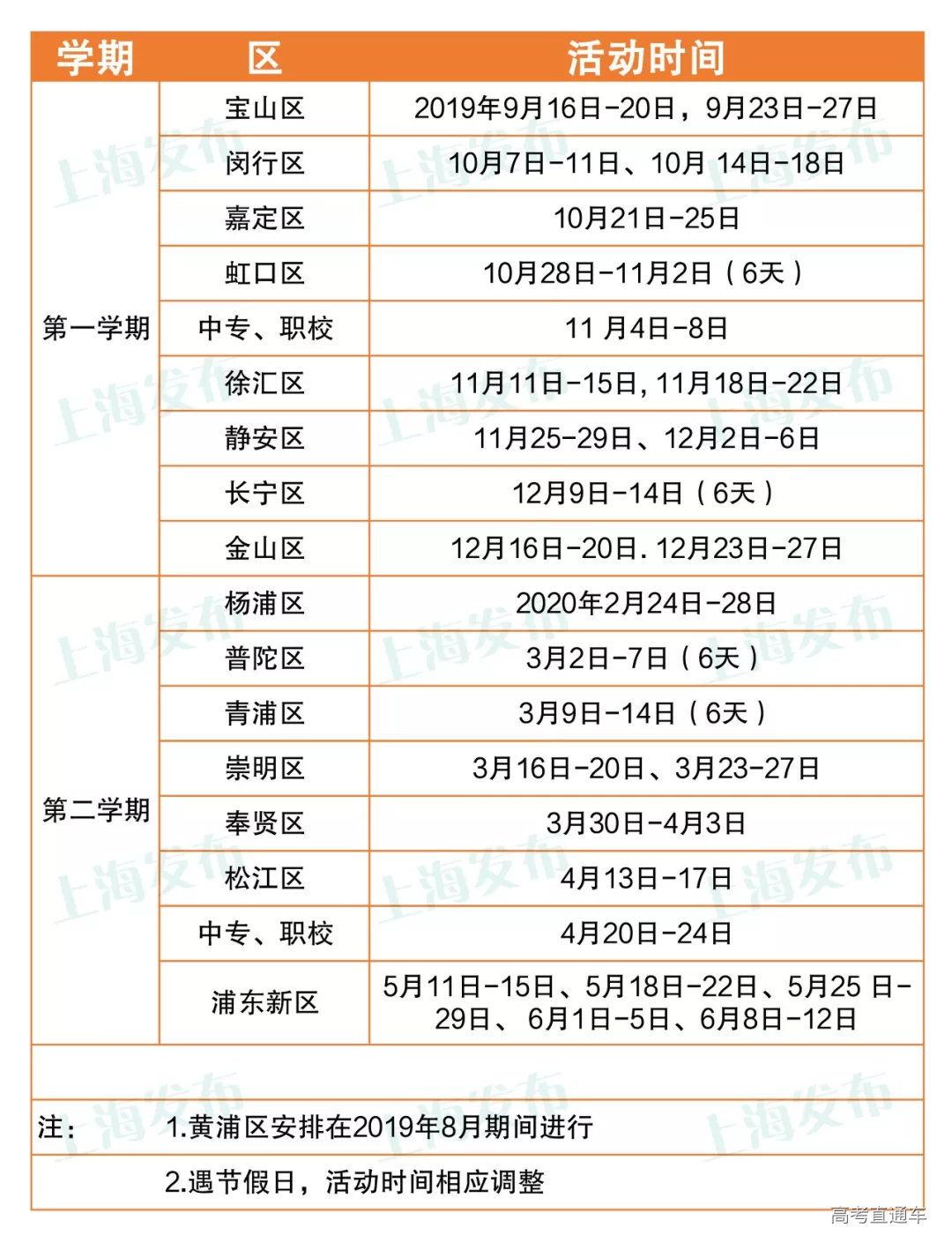 前些天,小编给大家分享了教委发布2019学年各区高中阶段学生赴上海市青少年校外活动营地军训时间安排表(东方绿舟),如下:
