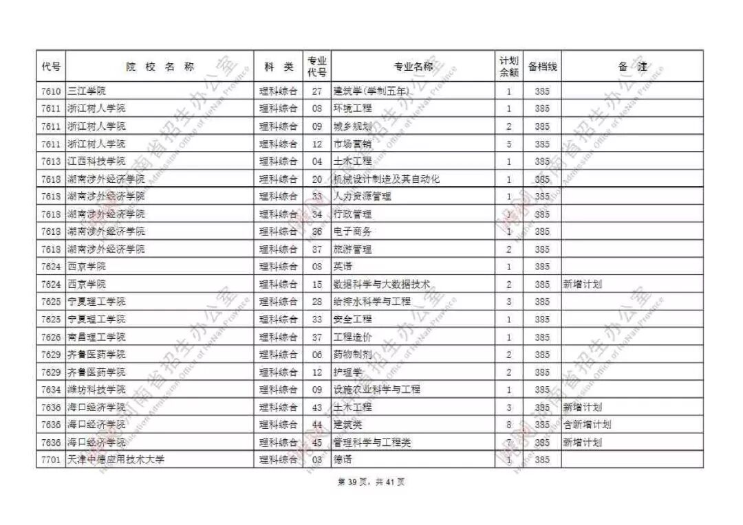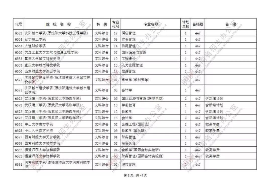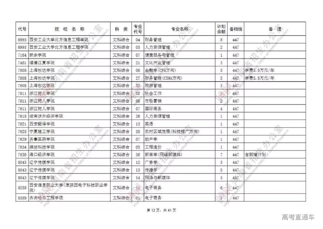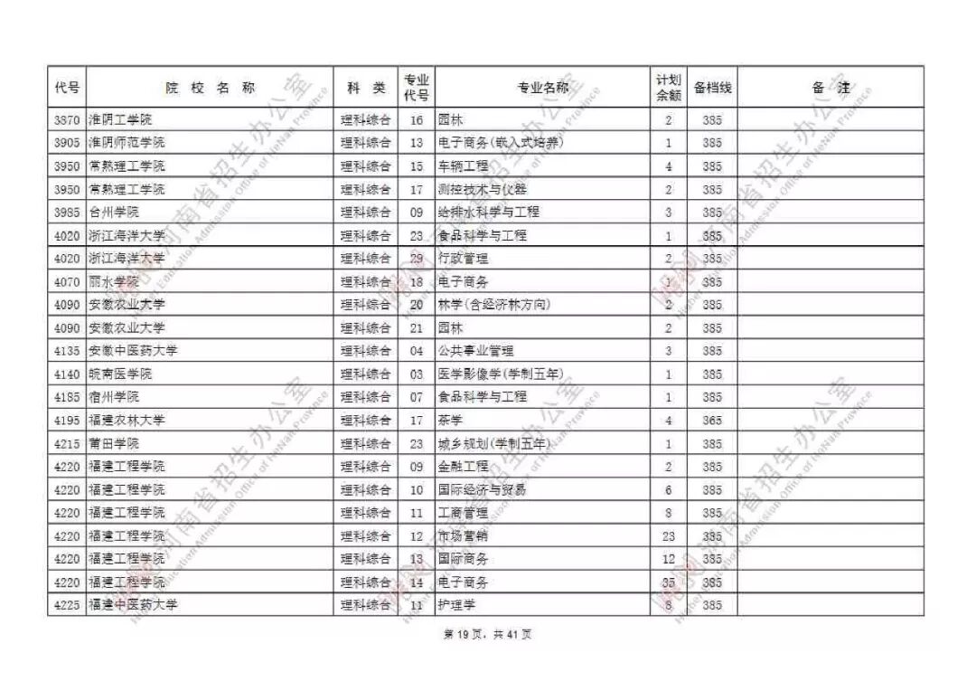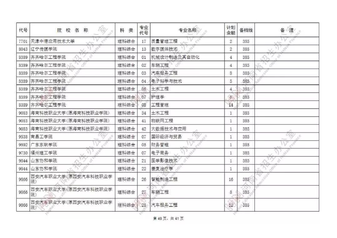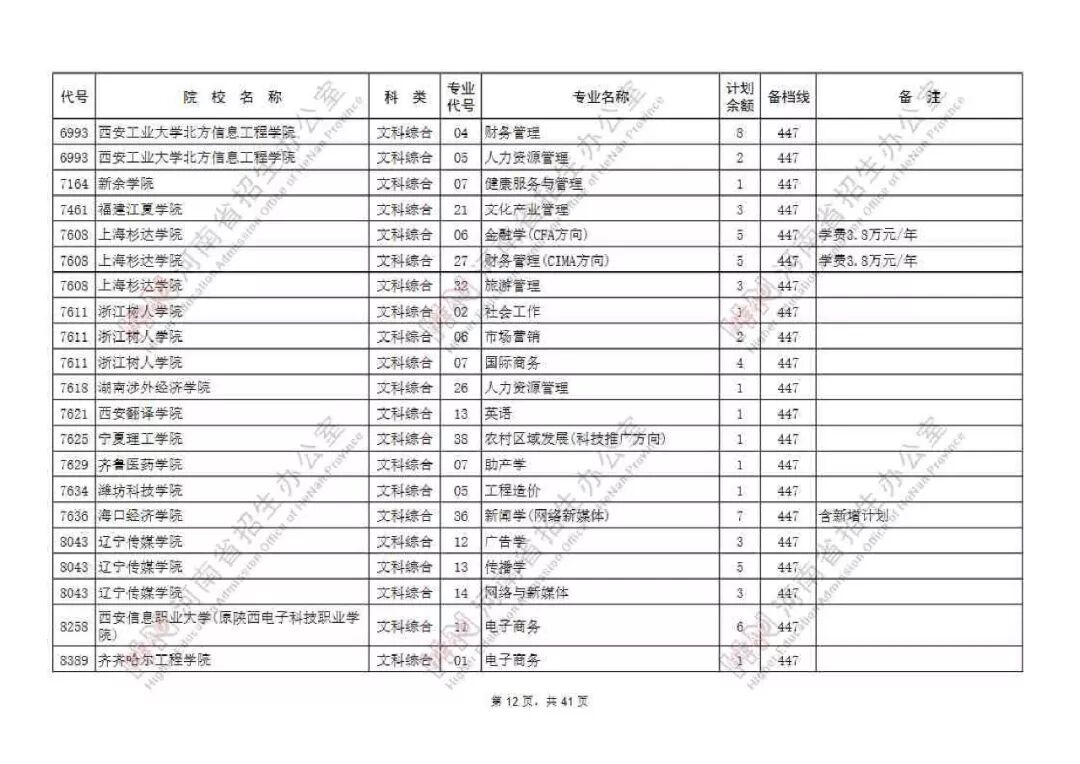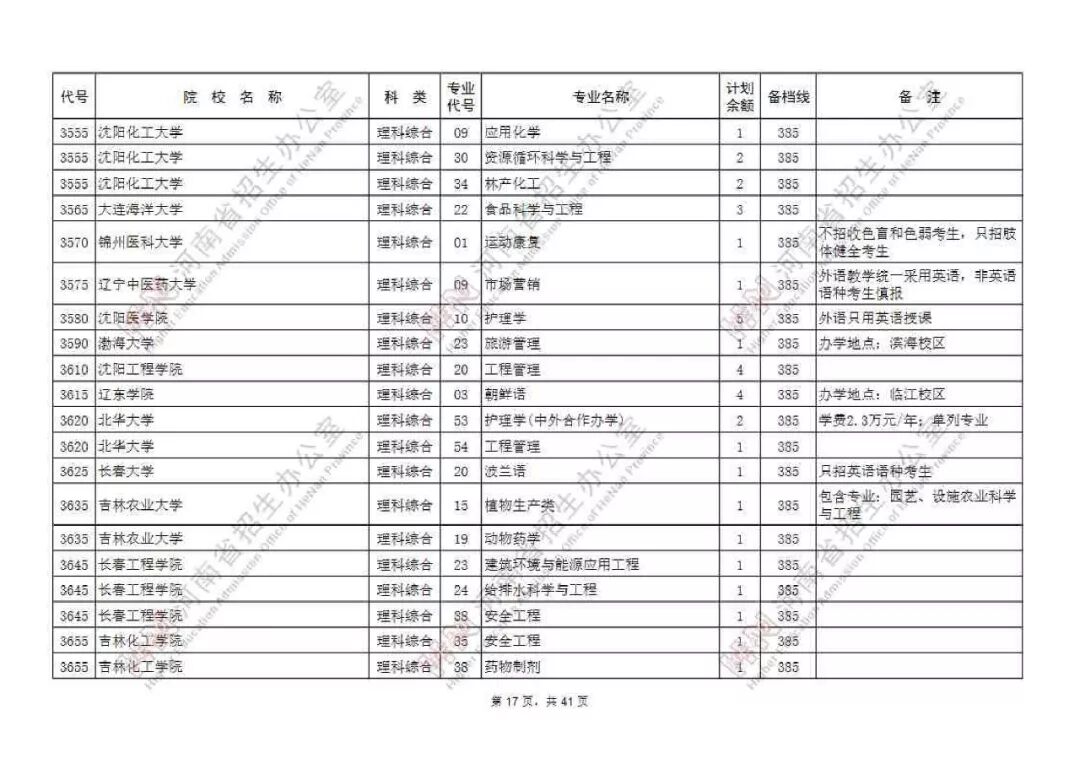 各省辖市招办,省直管县(市)招办,各有关院校: 一、生源范围 凡高考文化成绩达到省定相应批次分数线或备档线,且符合相应批次生源条件,当前未被录取的考生,可补报征集志愿的院校。 二、网上填报征集志愿办法 (一)征集志愿实行网上填报方式。拟选报征集志愿的考生,须于7月30日18:00之前登录河南省招生办公室网站(http://www.heao.gov.cn)查阅相关信息,凭本人帐号和密码登录“河南省普通高校招生考生服务平台”(https://pzwb.heao.gov.cn)查看本人档案运转状态,进入填报志愿界面,按照规定程序和时间完成网上志愿填报操作。逾期网上填报系统关闭,考生将无法再进行任何填报操作。 三、加强指导和服务工作 征集志愿是我省招生工作的既定程序,是完成招生计划、满足考生升学要求的重要措施。各市、县招办要高度重视,加强宣传,认真做好咨询指导,安排专人网上在线解答考生咨询问题。同时,在招生服务大厅为不具备上网条件的考生提供必要的上网填报志愿条件及咨询服务。 本科二批征集志愿院校分专业名单(365所) (可点击图片放大查看) 本科二批预科班征集志愿院校分专业名单(8所)