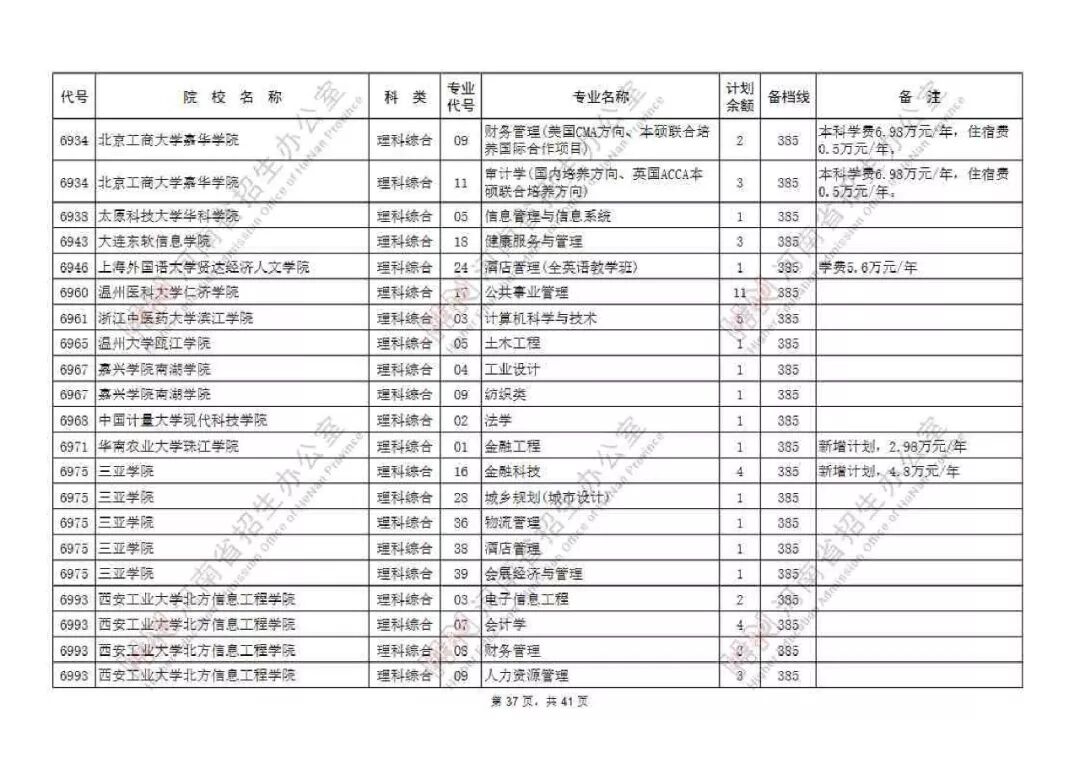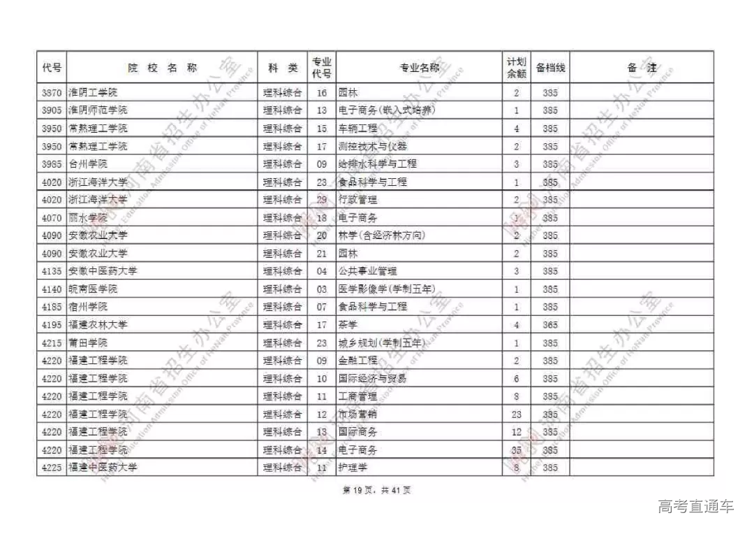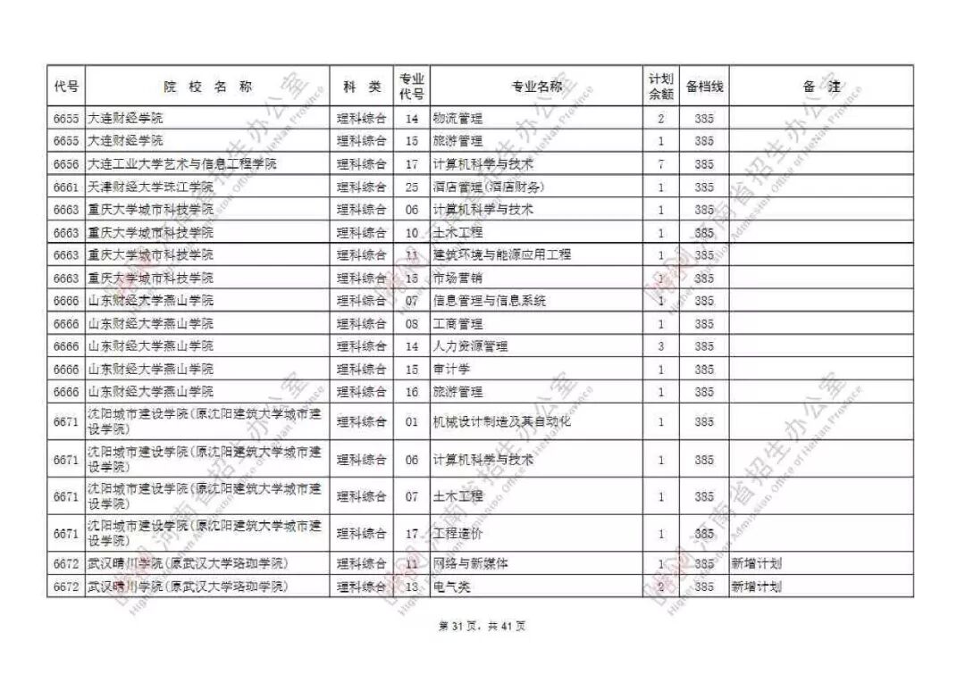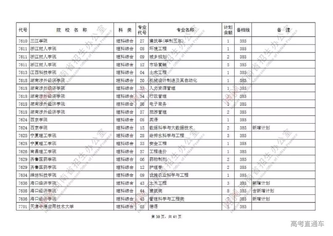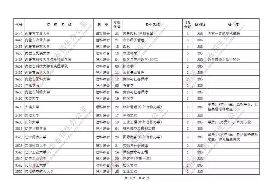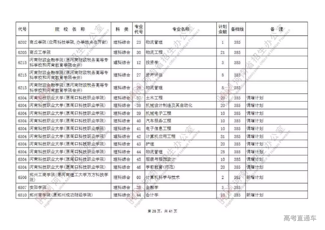 各省辖市招办,省直管县(市)招办,各有关院校: 一、生源范围 凡高考文化成绩达到省定相应批次分数线或备档线,且符合相应批次生源条件,当前未被录取的考生,可补报征集志愿的院校。 二、网上填报征集志愿办法 (一)征集志愿实行网上填报方式。拟选报征集志愿的考生,须于7月30日18:00之前登录河南省招生办公室网站(http://www.heao.gov.cn)查阅相关信息,凭本人帐号和密码登录“河南省普通高校招生考生服务平台”(https://pzwb.heao.gov.cn)查看本人档案运转状态,进入填报志愿界面,按照规定程序和时间完成网上志愿填报操作。逾期网上填报系统关闭,考生将无法再进行任何填报操作。 三、加强指导和服务工作 征集志愿是我省招生工作的既定程序,是完成招生计划、满足考生升学要求的重要措施。各市、县招办要高度重视,加强宣传,认真做好咨询指导,安排专人网上在线解答考生咨询问题。同时,在招生服务大厅为不具备上网条件的考生提供必要的上网填报志愿条件及咨询服务。 本科二批征集志愿院校分专业名单(365所) (可点击图片放大查看) 本科二批预科班征集志愿院校分专业名单(8所)