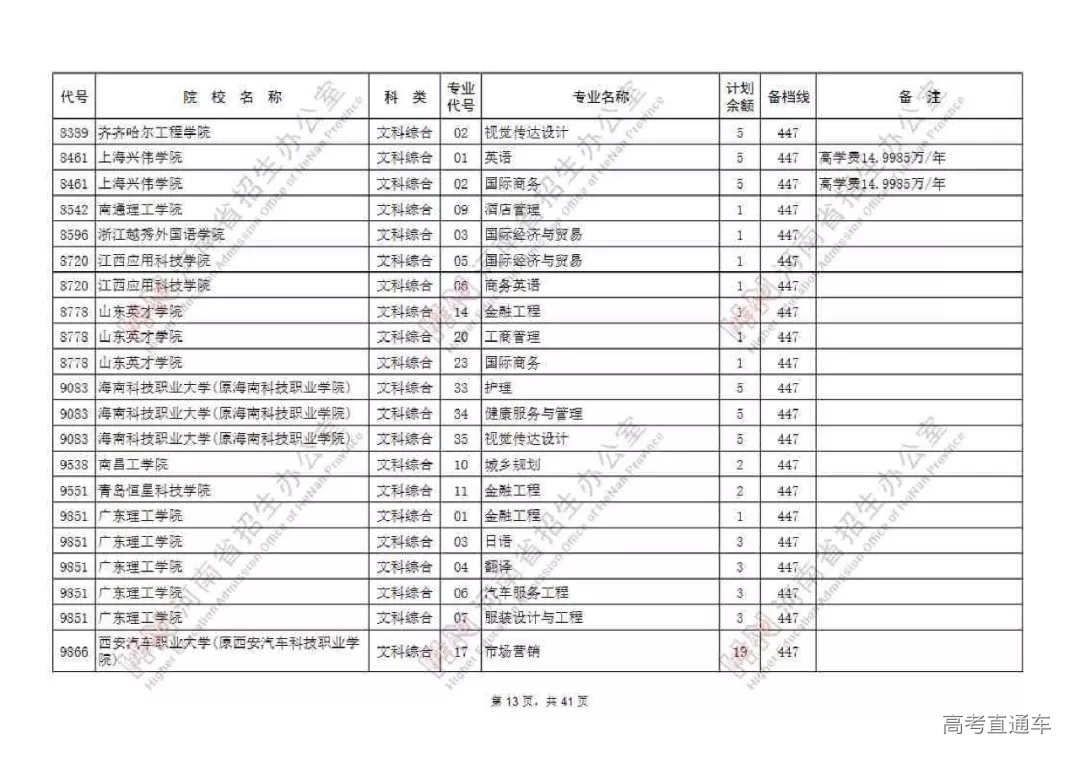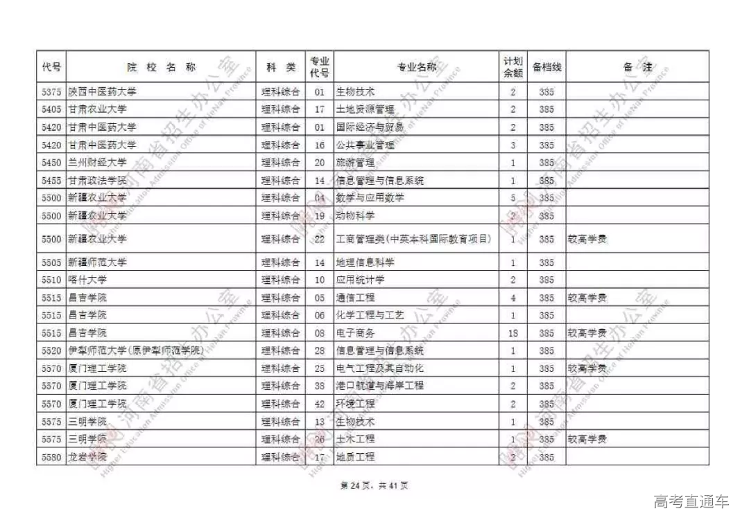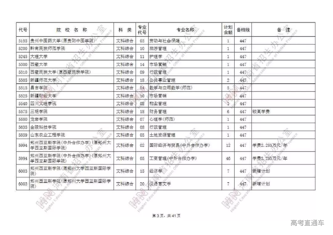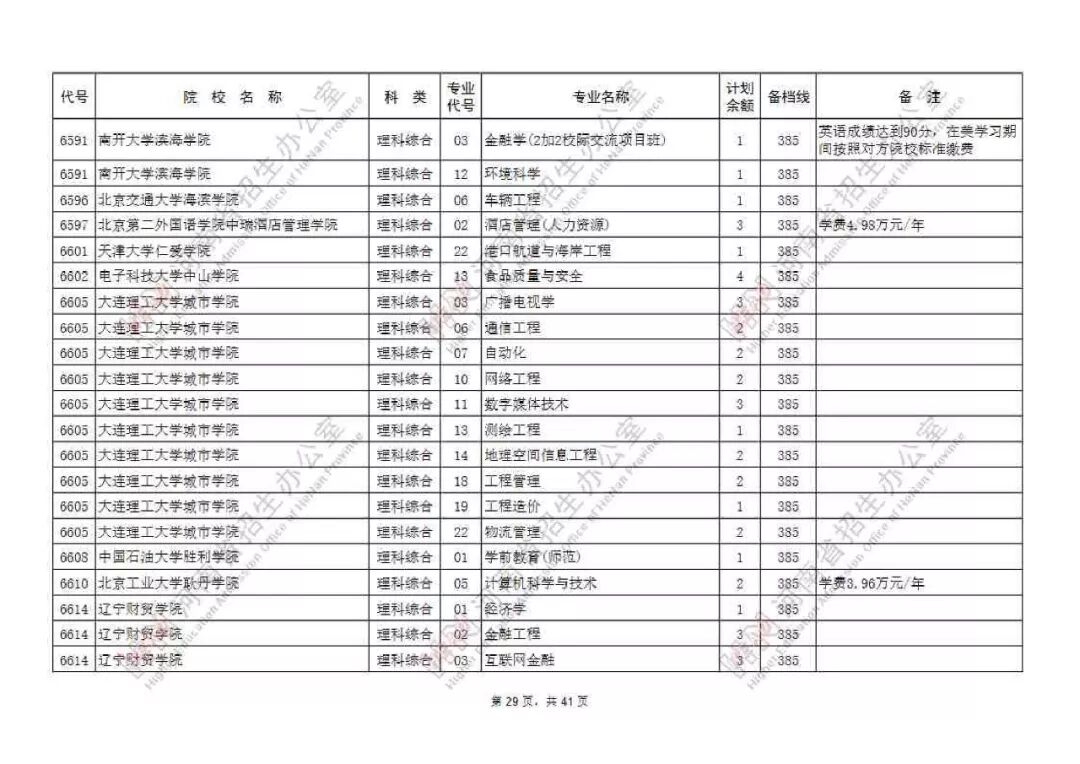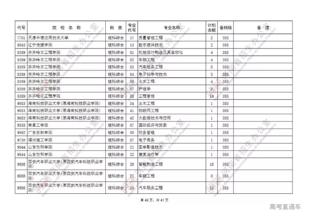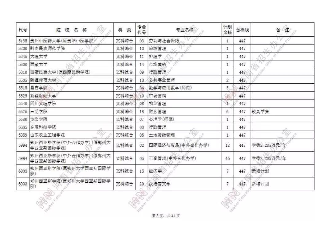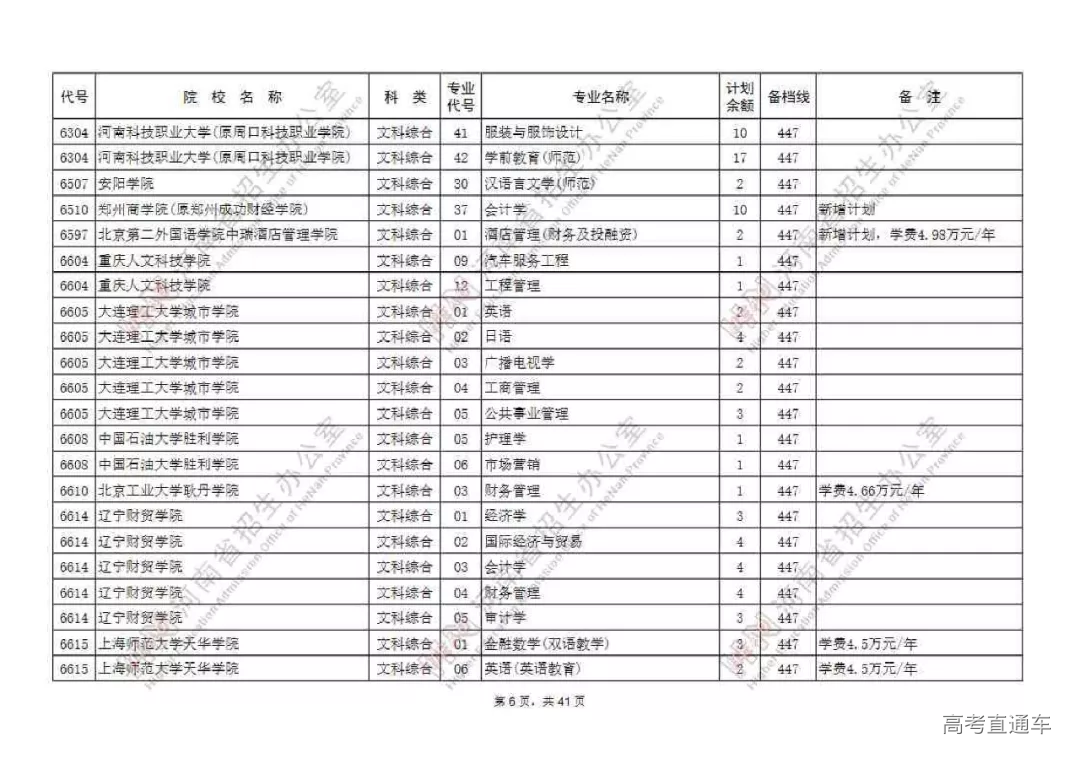各省辖市招办,省直管县(市)招办,各有关院校: 一、生源范围 凡高考文化成绩达到省定相应批次分数线或备档线,且符合相应批次生源条件,当前未被录取的考生,可补报征集志愿的院校。 二、网上填报征集志愿办法 (一)征集志愿实行网上填报方式。拟选报征集志愿的考生,须于7月30日18:00之前登录河南省招生办公室网站(http://www.heao.gov.cn)查阅相关信息,凭本人帐号和密码登录“河南省普通高校招生考生服务平台”(https://pzwb.heao.gov.cn)查看本人档案运转状态,进入填报志愿界面,按照规定程序和时间完成网上志愿填报操作。逾期网上填报系统关闭,考生将无法再进行任何填报操作。 三、加强指导和服务工作 征集志愿是我省招生工作的既定程序,是完成招生计划、满足考生升学要求的重要措施。各市、县招办要高度重视,加强宣传,认真做好咨询指导,安排专人网上在线解答考生咨询问题。同时,在招生服务大厅为不具备上网条件的考生提供必要的上网填报志愿条件及咨询服务。 本科二批征集志愿院校分专业名单(365所) (可点击图片放大查看) 本科二批预科班征集志愿院校分专业名单(8所)