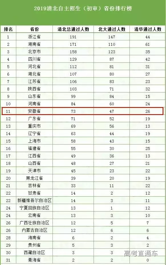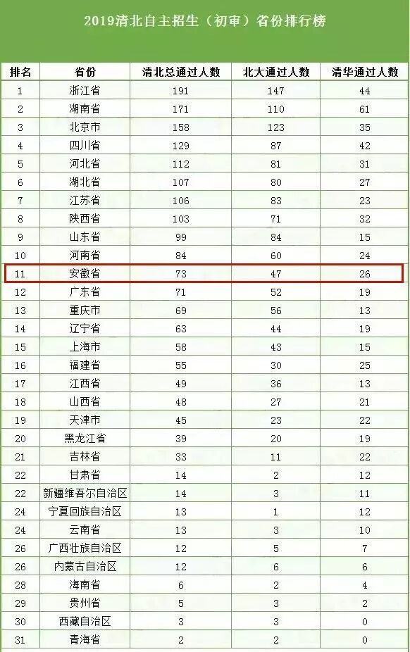 在这份数千人的名单中,北京大学自主招生审核通过的有1347人,清华大学审核通过的有612人,共1959人,其中安徽学子73人。