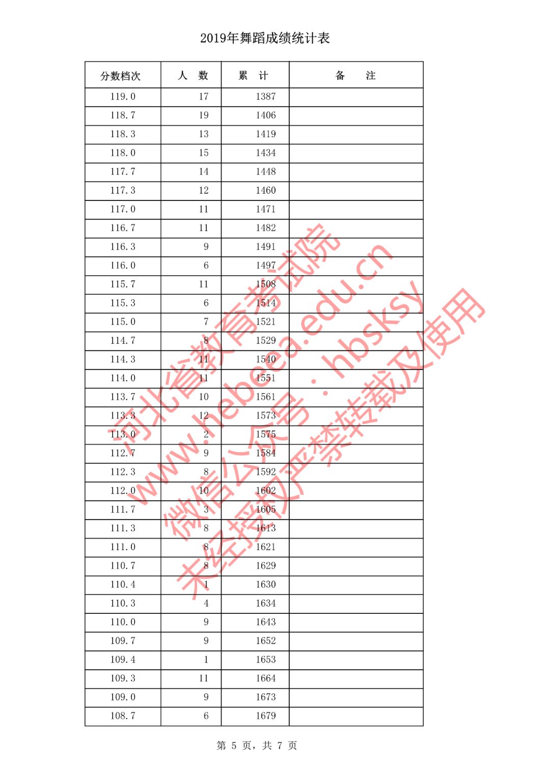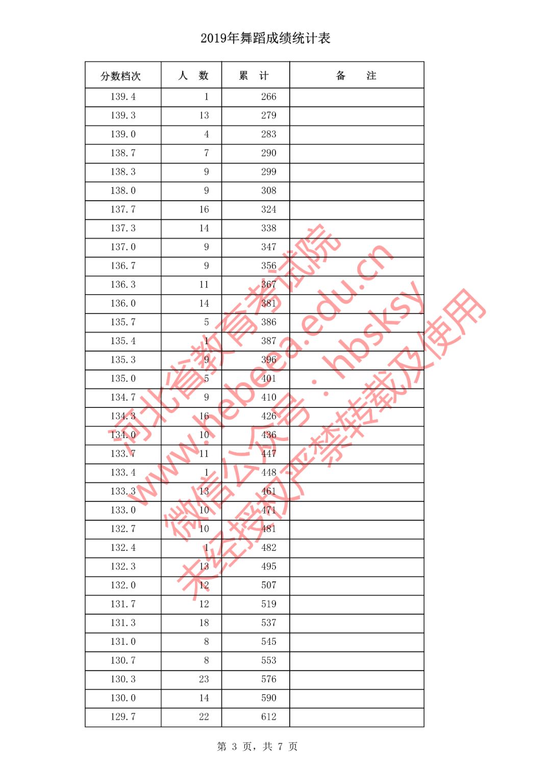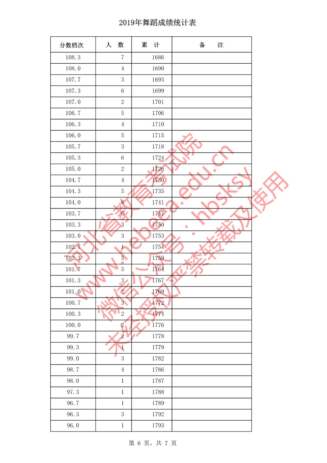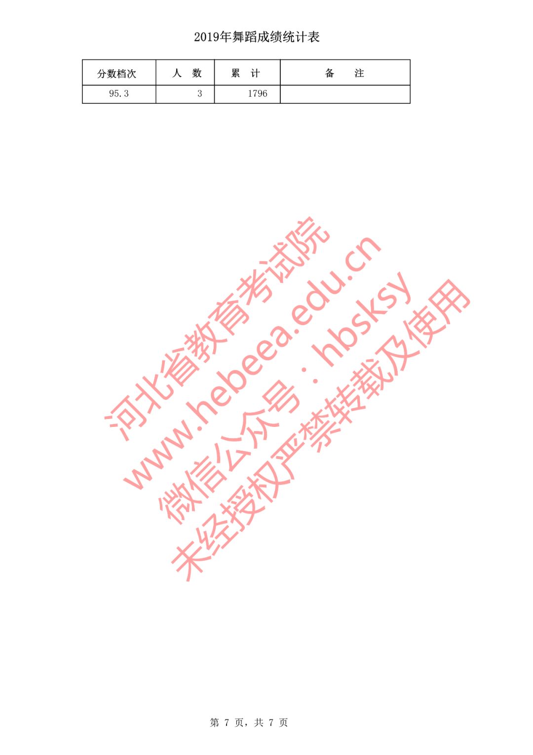 2019年河北省普通高校招生舞蹈考生成绩统计表