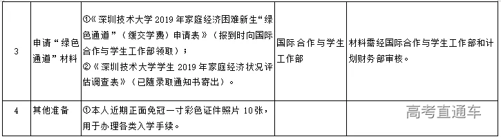 凡拟申请国家助学贷款或已申请生源地助学贷款的新生,须填写好《深圳技术大学学生2019年家庭经济状况评估调查表》。入学时请在新生报到现场通过“绿色通道”办理入学手续(办理绿色通道缴交材料详见附1)。
