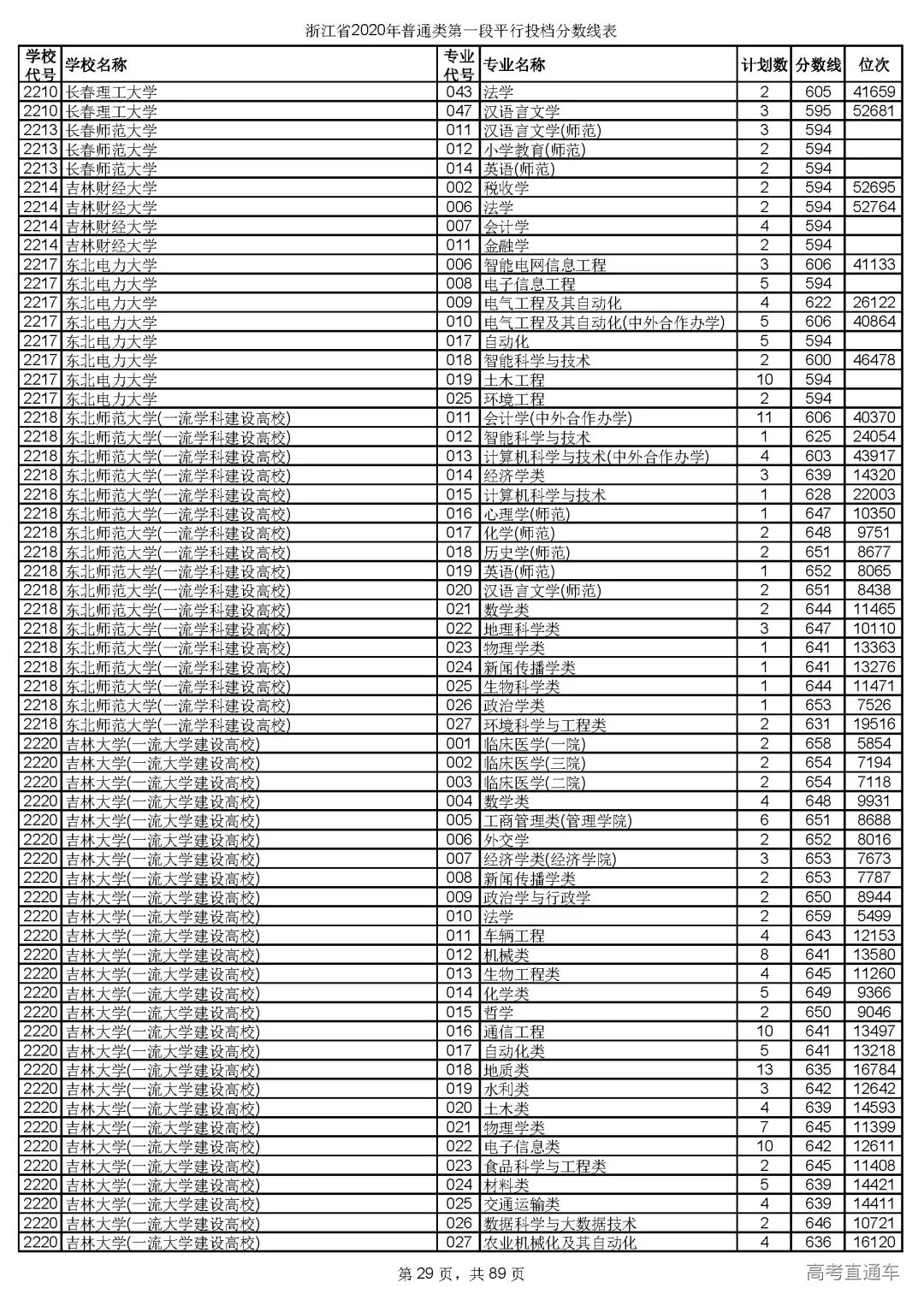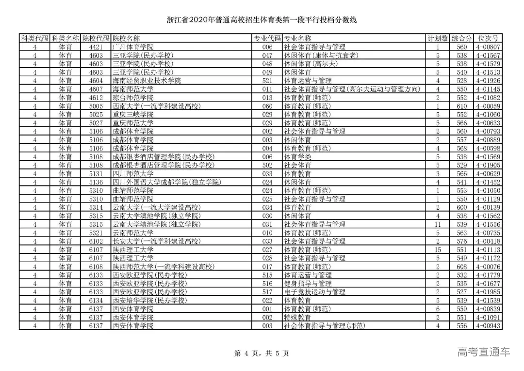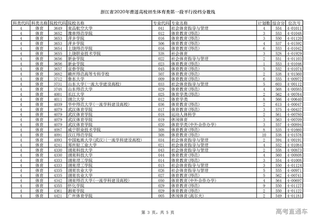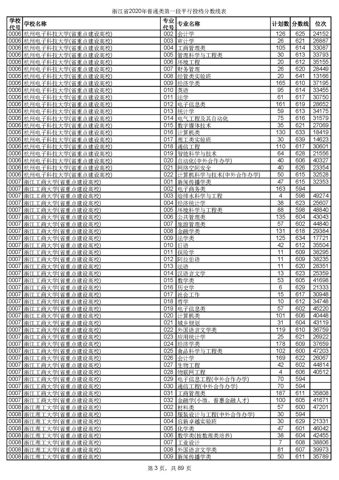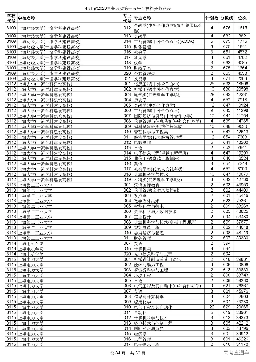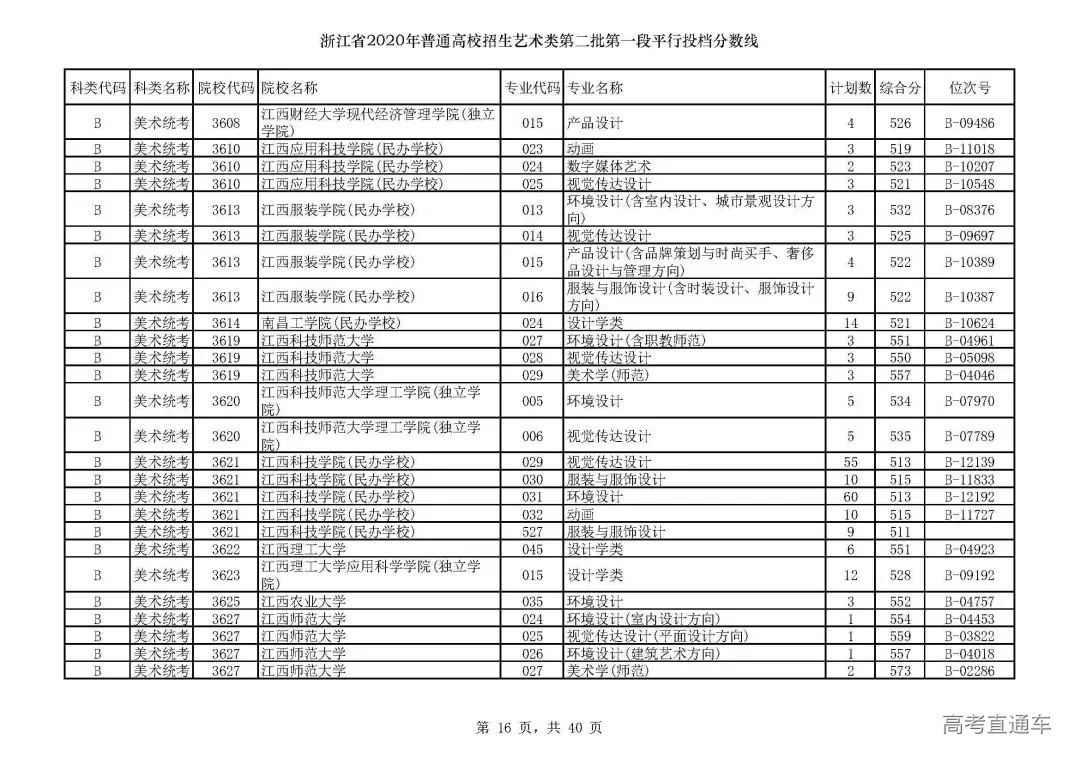 浙江省2020年艺术类第二批第一段平行投档分数线