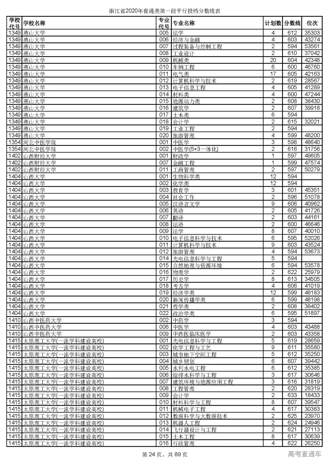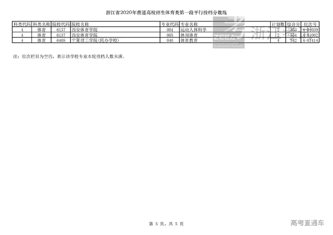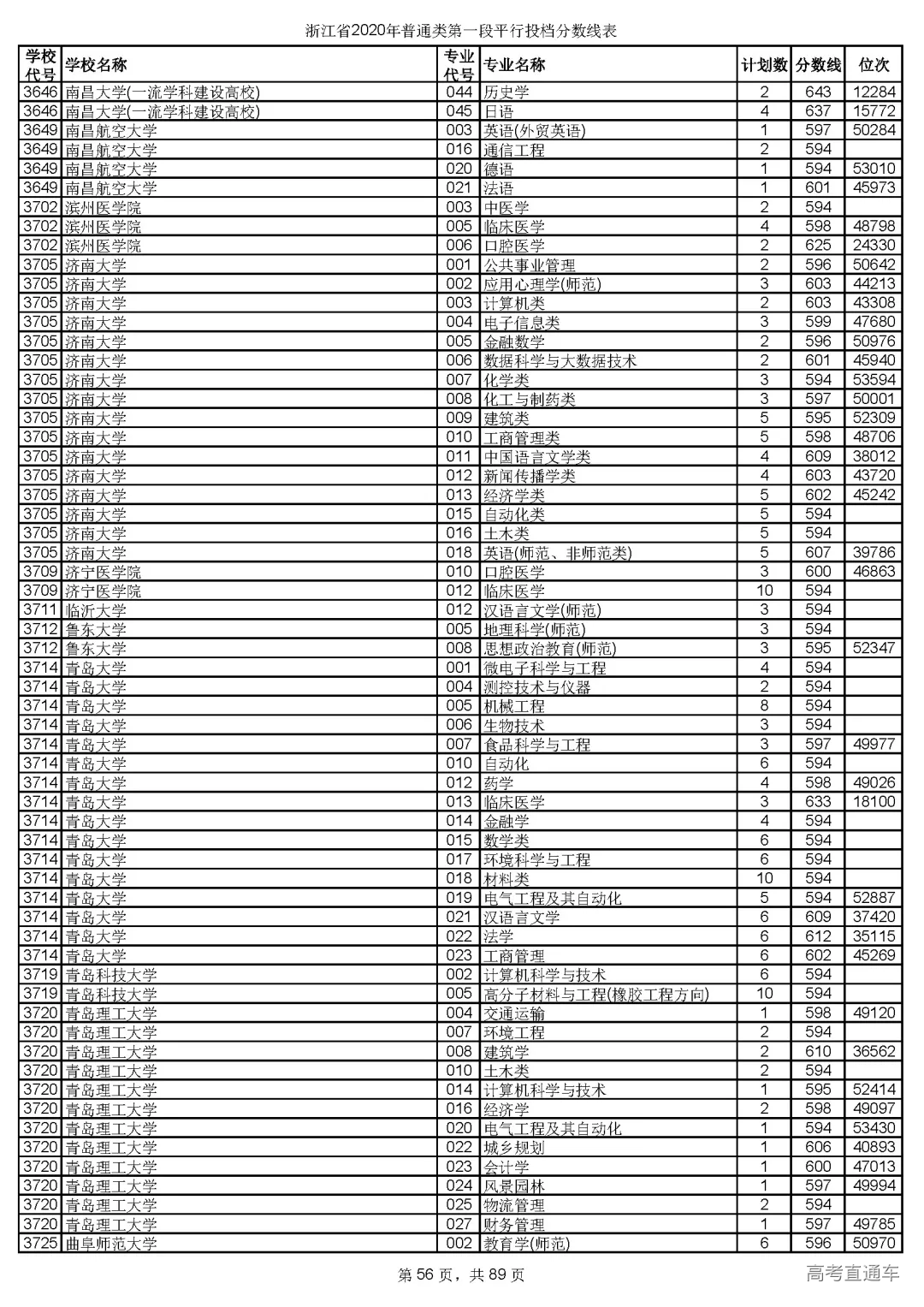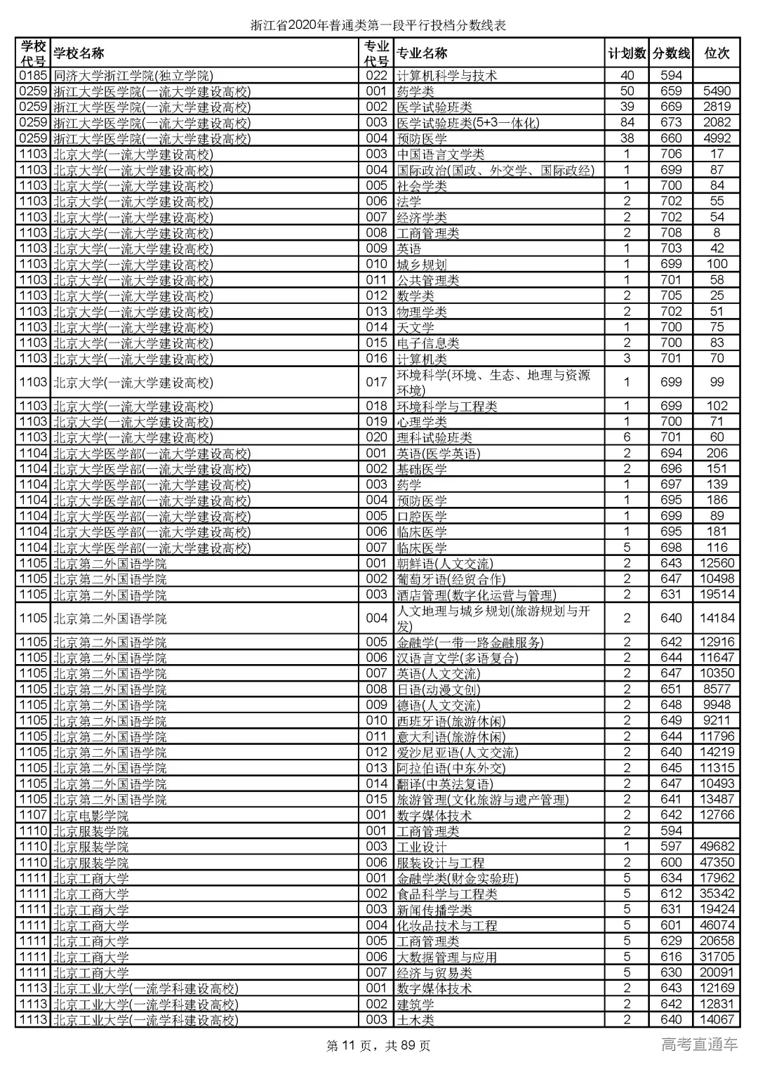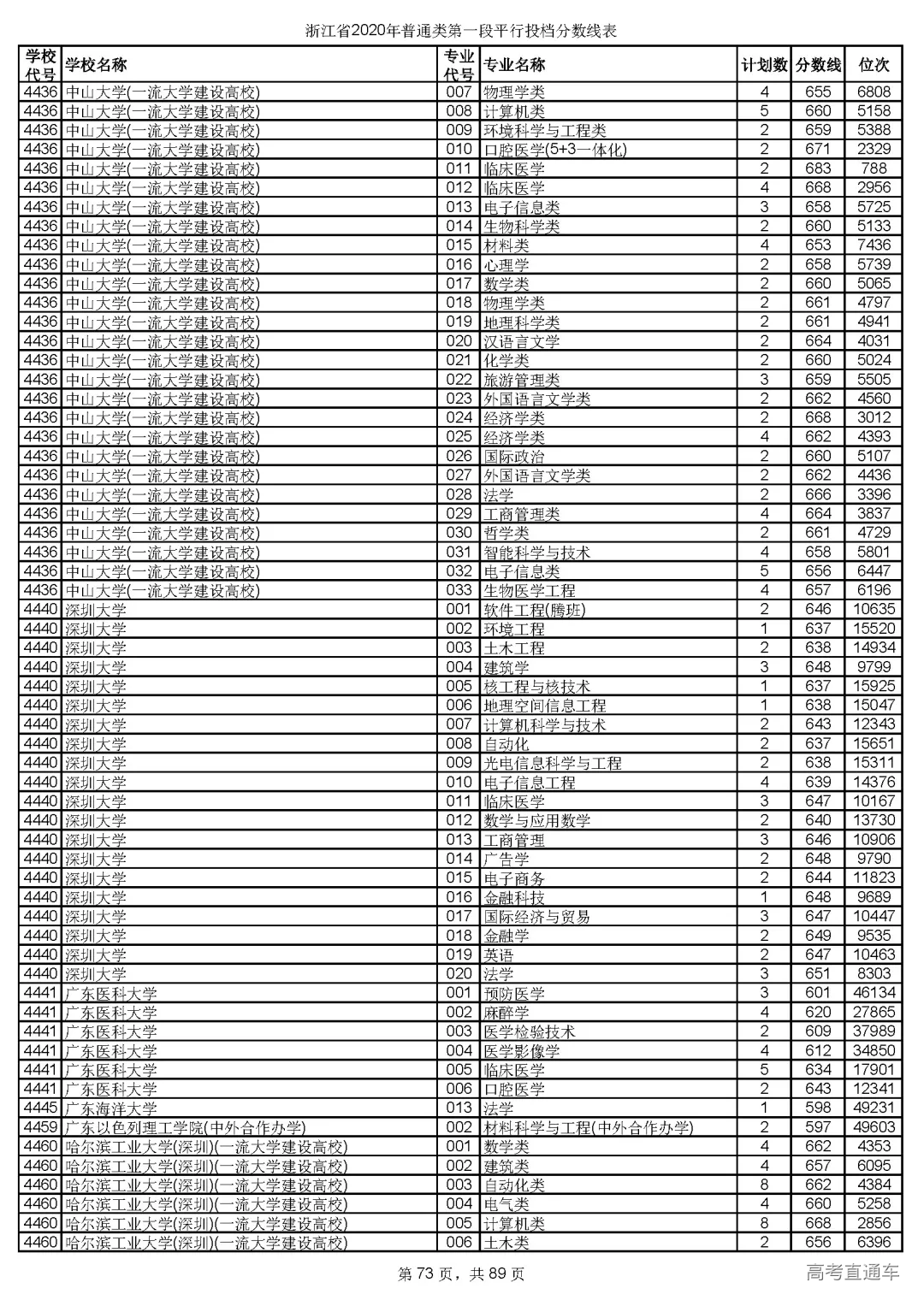 浙江省2020年艺术类第二批第一段平行投档分数线