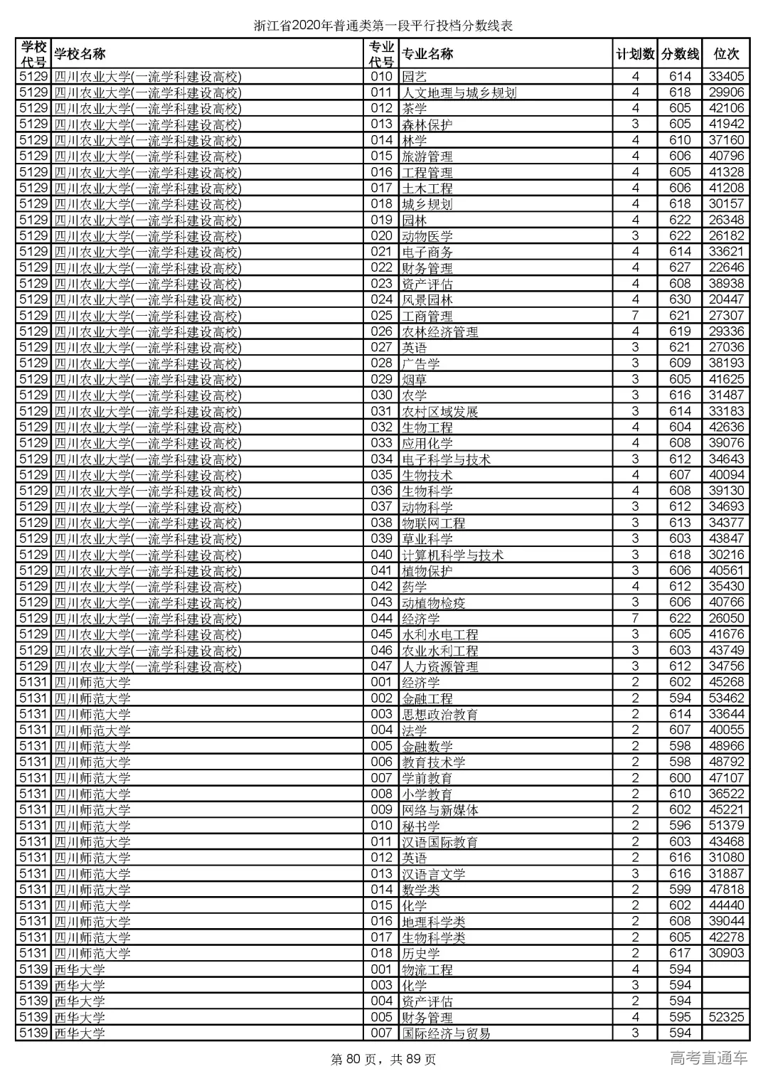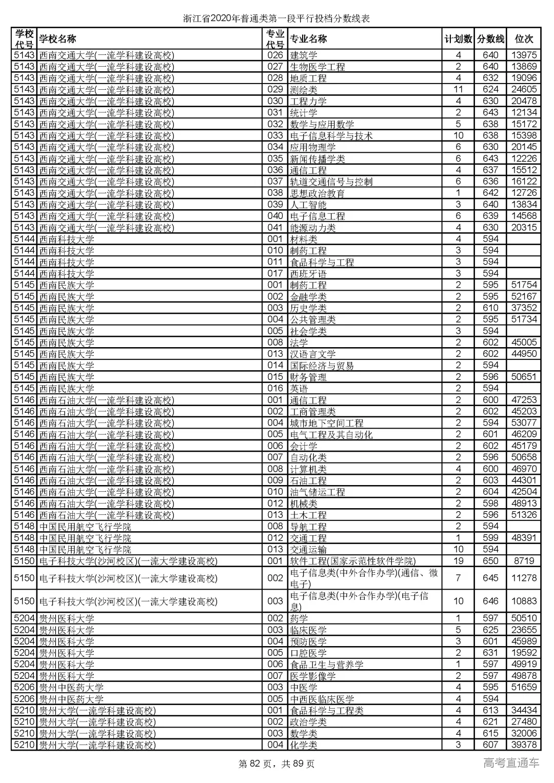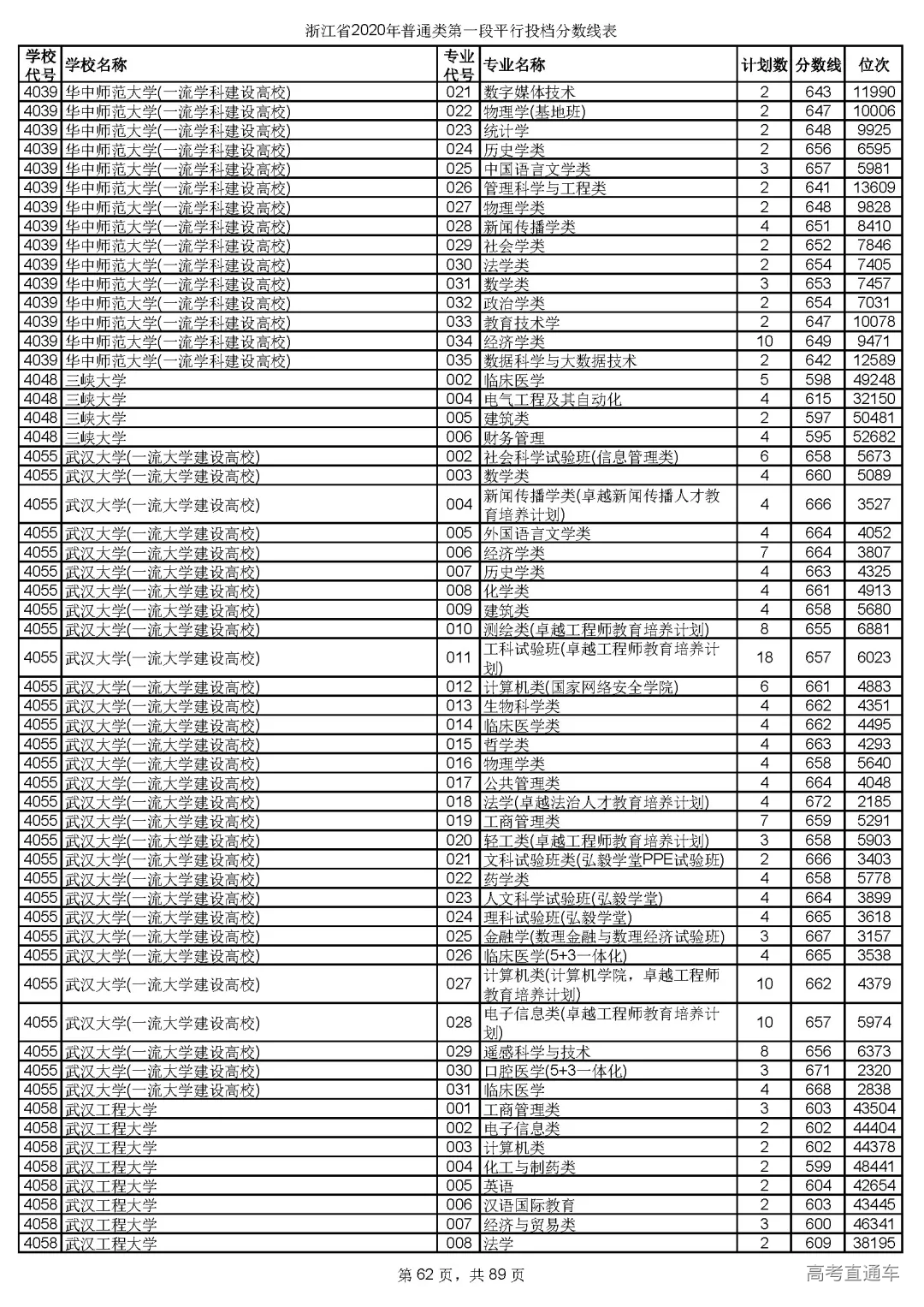 投档线怎么形成,怎样使用 浙江新高考招生实行专业平行志愿,按“分数优先、遵循志愿”的投档规则和招生计划1:1的比例,直接投到考生所填报的具体院校的具体专业(类)。被投档的最后一名考生的分数即为该校该专业投档线,由计算机投档后自动生成。 那么,平行投档分数线具体该怎么看,怎么知道是否被投档?考生根据投档分数线查询自己投档状态时,要按志愿顺序、对照位次依次进行,一旦符合条件即说明已经被该校该专业投档。高考总分相同时按位次、志愿顺序投档,若考生总分上线但位次或志愿序号未达到,仍将无法被投档到该专业。 需提醒的是,专业投档分数线的高低,主要由该院校专业报考生源人数、招生计划数所决定。报考人数尤其是高分考生多,就会导致专业投档分数线上升;专业招生计划数大,其投档分数线也会相对下降。因此,看各院校专业投档线时要与招生量结合,不能简单地把投档线与院校综合实力挂钩。比如,浙江大学及本省有关综合性大学在浙招生量大,为一段线上考生提供大量优质高教资源,某些专业(类)招生多达上百人,超出多数院校年度总招生量。 新高考专业平行志愿,因“不服从专业调剂而退档”的情况不复存在,但退档风险依然存在。若考生的体检、单科成绩等不符要求,还是可能会退档。平行投档每轮只有一次投档机会,一旦被投到其中一个志愿,其余志愿即同步失效;若投档后被退档,其他志愿也不能再投,只能再次参加后续志愿填报。 本轮高考招生投档录检完成后,剩余计划将于8月22日上午在浙江省教育考试院网站公布,二段考生和一段未被录取考生的志愿填报将于8月25-26日进行。 浙江省2020年普通类第一段平行投档分数线