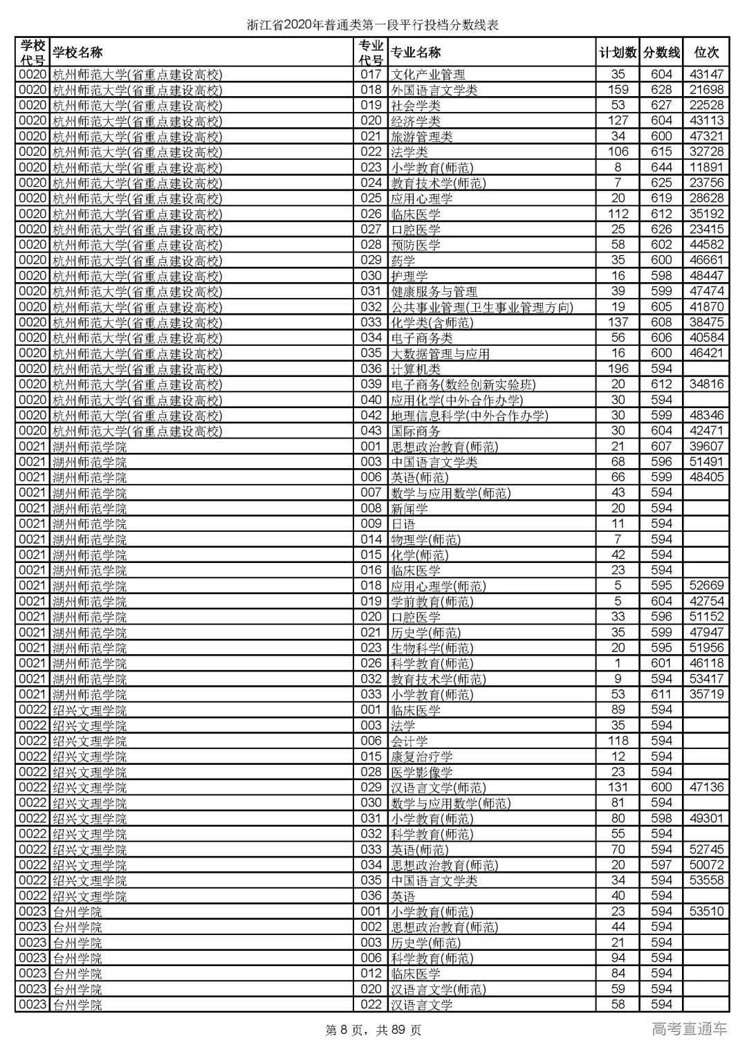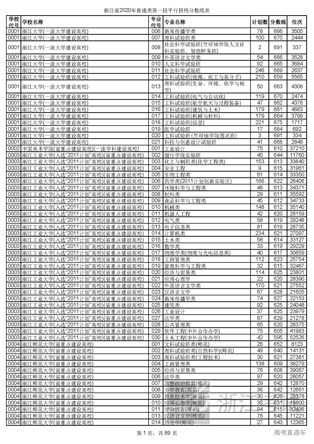 2020年我省高考普通类一段,艺术类第二批一段、体育类一段平行志愿今天上午8:30投档,在浙招生各高校的专业投档分数线随后出炉!按照今年高考招生录取进程,预计相关考生可于8月21日晚,通过浙江省教育考试院网站(www.zjzs.net)、“浙江考试”微信公众号或“浙里办”APP,查询自己在本轮投档后的录取状态。