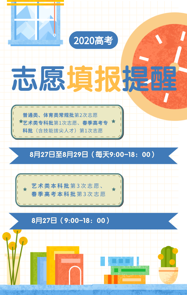 (一)全方位了解志愿填报信息。考生填报志愿前,一定要认真查阅《2020年山东省普通高校招生填报志愿指南》(专科)(以下简称《填报志愿指南》)中的各项内容和我院网站公布的《山东省2020年普通高等学校招生录取工作意见》(鲁招考委办〔2020〕16号),并登录拟填报高校的网站认真查阅高校招生章程(简章),了解高校有关报考要求及录取原则。尤其是艺术类有关高校及专业报考条件及录取原则有所不同,填报前更要仔细阅读相关高校招生章程(简章),结合自身条件确定是否报考,避免因不符合报考条件被退档。 (二)选考科目要求。考生要按照招生专业对选考科目的要求填报志愿,只有符合选考科目要求才能报考相应专业。 (三)不同类型志愿填报时间不一致,请考生务必注意,建议考生尽量早于志愿填报结束前2小时提交,避免因意外造成志愿填报无法完成。在填报志愿时限之后,不再受理考生补报志愿申请,也不允许考生修改、放弃已填报的志愿,请考生一定要及时上网填报志愿。 (一)填报时间:普通类常规批第2次志愿填报时间为8月27日-29日(每天9:00-18:00)。 (二)填报范围。普通类二段线上考生(含未被录取的一段线上考生)均可参加第2次志愿填报,可同时填报本科的缺额计划(详见山东省教育招生考试院网站)志愿和专科志愿(见《填报志愿指南》专科及省考试院网站有关变更信息)。 (三)志愿填报要求。志愿均实行以“专业(专业类)+学校”为单位的平行志愿模式,1个“专业(专业类)+学校”为1个志愿。考生每次填报志愿的数量最多不超过96个(本科和专科志愿都包含在内)。 高职院校专项计划志愿包含在96个志愿之内,具有相应资格的考生可在常规批第2次志愿填报时填报。 公费专科医学生包含在96个志愿之内,考生可在常规批第2次志愿填报时填报。 “3+2对口贯通分段培养”高职阶段招生,总成绩达到或超过普通类一段线下50分(即399分)的考生,可在常规批第2次志愿填报时填报,包含在96个志愿内。 (四)非西藏生源定向西藏就业计划(山东大学)591分(含)以上考生填报志愿。边防军人子女预科班449分(含)以上考生填报志愿。 (五)部分高校部分专业对性别、单科成绩、面试等有要求,请考生填报之前一定要仔细阅读高校招生章程(简章)及《填报志愿指南》(专科)。 (六)部分本科高校招生计划是常规批第1次录取结束后从其他省市新调入我省的计划,学校对考生录取分数有要求,请根据自身分数情况合理填报。 (七)部分专业对考生高考体检结论有要求,例如不录取色盲、色弱考生,请考生仔细查阅《普通高等学校招生体检工作指导意见》及高校招生章程(简章),合理填报。 1.志愿填报时间:8月27日(9:00-18:00)。 2.查看我院网站公布的艺术类本科批第3次志愿缺额计划。 3.艺术类专业投档时关联专业合格成绩,只有专业合格的考生才有资格填报。 承认其他高校校考成绩(包括相关高校联考、校考成绩)的专业,考生所取得的合格证专业名称须与所报考的专业名称完全一致。含招考方向的专业,是否要求招考方向也完全一致,请考生具体咨询报考院校。其中,根据学校来函要求沈阳体育学院的舞蹈表演(健美操)和舞蹈表演(体育舞蹈)两个专业,考生所取得合格证专业名称及招考方向须与所报考专业名称及招考方向完全一致;舞蹈表演(舞蹈)专业,仅须考生所取得合格证专业名称与所报考专业名称一致。四川电影电视学院2X表演(影视创作方向),该专业须专业名称和招考方向完全一致,方可报考。 4.考生填报艺术类本科批第3次志愿时,只能在统考、联考、校考中选择其一,不能同时填报,其中符合联考报考条件的考生,只能选择同一个联考平台内的高校进行填报,不同联考平台内的高校不能混在一起填报。 1.须达到艺术类专科文化控制线(150分)方可填报。 2.填报使用校考成绩的高校和专业,考生须具有该校相应专业校考合格证。 3.使用校考成绩的高校及专业只能填报1个高校和1个专业志愿。其他专业分类别实行平行志愿,按“专业(专业类)+学校”志愿模式填报,考生每次志愿填报数量不超过60个。 (一)填报时间:普通类常规批第2次志愿填报时间为8月27日-29日(每天9:00-18:00)。 (二)填报范围。体育类二段线上考生(含未被录取的一段线上考生)填报本科(缺额计划见山东省教育招生考试院网站)、专科志愿(见《填报志愿指南》专科及省考试院网站有关变更信息)。 (三)均实行 “专业(专业类)+学校”为单位的平行志愿,1个“专业(专业类)+学校”为1个志愿。考生每次填报志愿的数量最多不超过60个(本科和专科志愿都包含在内)。 1.填报时间:春季高考本科批第3次志愿填报时间为8月27日(9:00-18:00)。 2.分数线要求:第3次志愿填报资格线为首次确定的春季高考本科相应类别录取控制分数线线下20分。 3.查看我院网站公布的春季高考本科批第3次志愿缺额计划。 4.填报春季高考志愿时,考生填报的专业类别须与考试 1.填报时间:春季高考专科批志愿填报时间为8月27日-29日(每天9:00-18:00)。 2.填报春季高考志愿时,考生填报的专业类别须与考试时的专业类别一致。 3.春季高考技能拔尖人才志愿仅限经省教育招生考试院网站公示的技能拔尖人才填报,在专科批志愿中填报。 4.报考高职院校专项计划的考生可同时填报其他计划志愿,投档时先投高职院校专项计划志愿,再投档其他计划志愿。 (一)考生须熟知平行