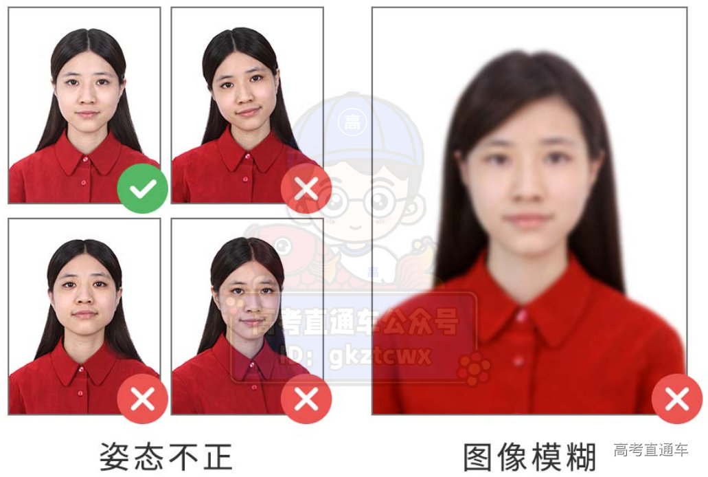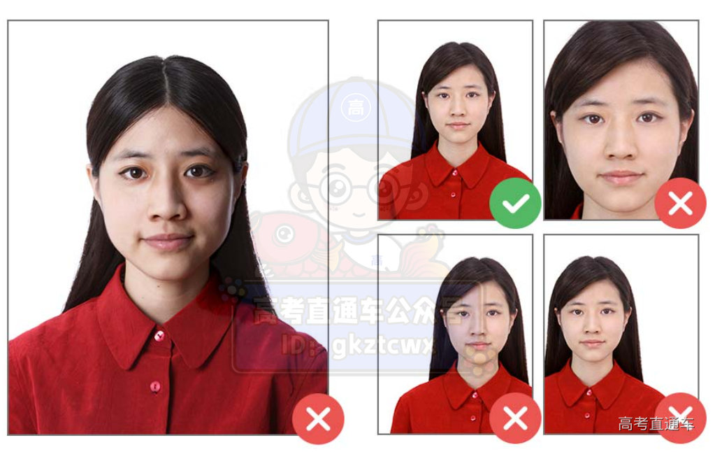 请不要佩戴首饰或帽子,头发不可遮挡眼眉、耳朵。