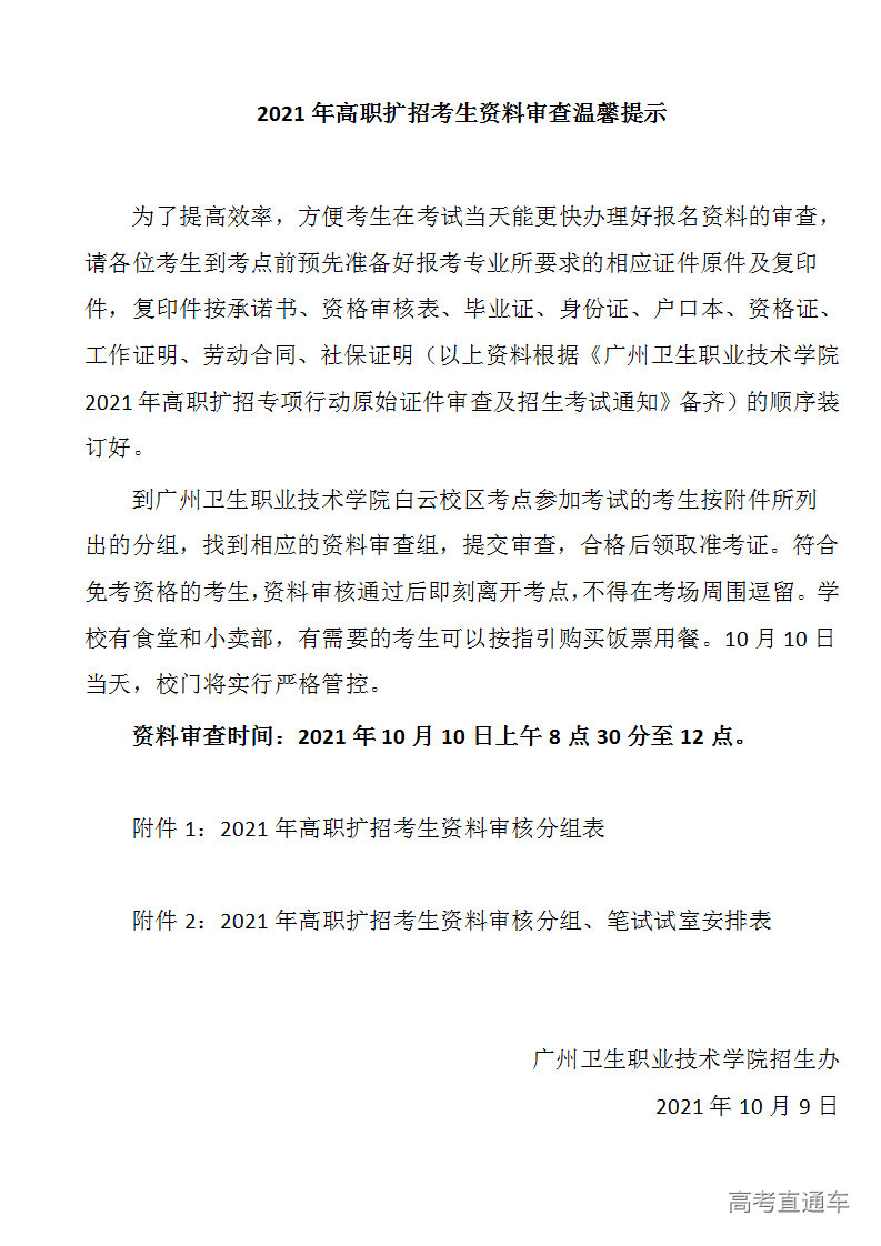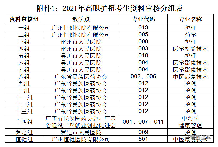 附件2:2021年高职扩招考生资料审核分组、笔试试室安排表