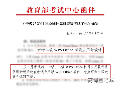2020年11月25日,国家教育部考试中心宣布:将新增计算机考试科目,正式把使用最广泛的国产办公软件——WPS Office作为全国计算机等级考试(NCRE)的二级考试科目之一,该调整计划明年在全国实施,3月正式开考。