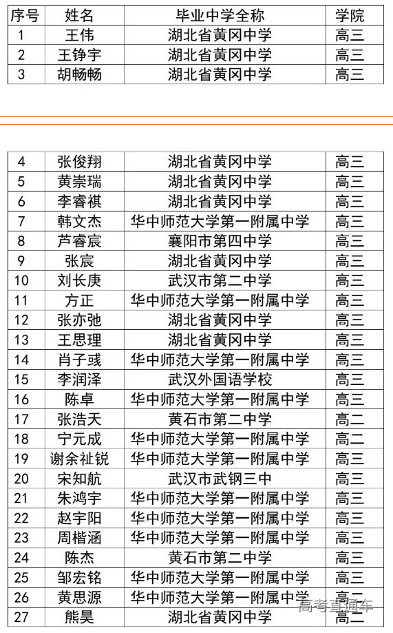 2024年第41届全国中学生物理竞赛复赛省队名单(湖北)