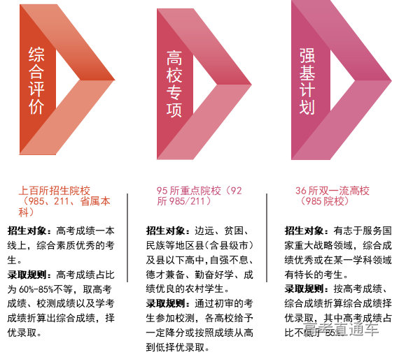 综合评价、强基计划、高校专项是高校不同的招生途径,也可以说是招生方式。这三种招生方式各有侧重,预计符合条件的考生可以兼报。