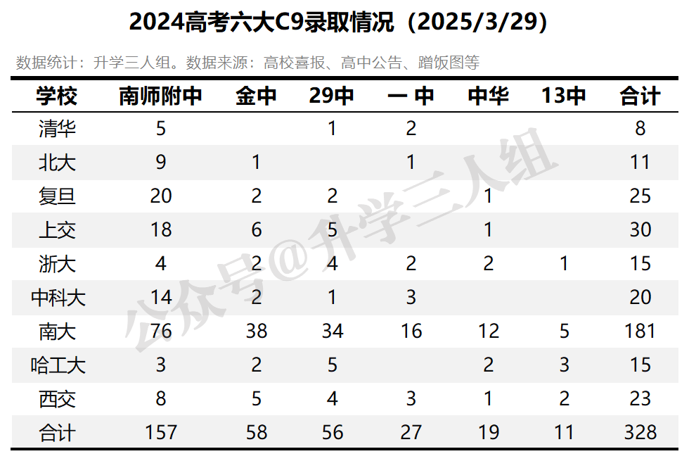 文理合计前500,是南京传统的C9线,并不是985线。985线,一般是文理合计前1000。说到C9,南京实际录取也不止500人。2024年高考,六大录取C9总计328人。(统计数据来自高校喜报、蹭饭图及高中公告,如有疏漏可以私聊我。)