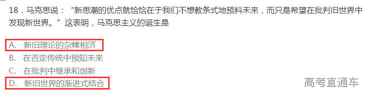 现在就是A、D项,整个题干看一下,没提到民族独立,那就蒙个D。