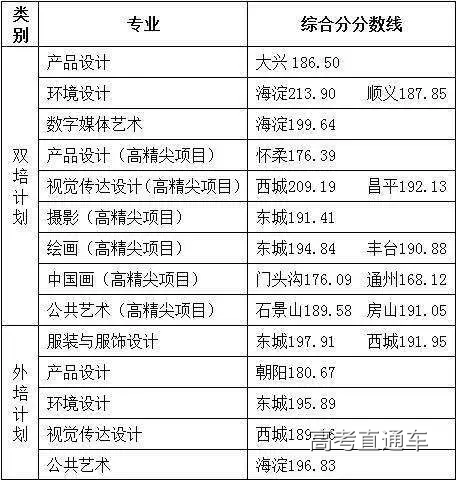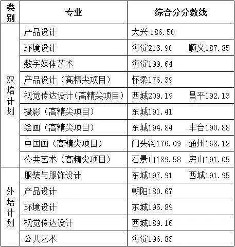 考生须达到北京市艺术本科录取控制分数线,并且“双培计划”外语科目成绩不得低于60分,“外培计划”外语科目须为英语,且成绩不得低于90分,根据《北京服装学院2019年面向北京市招收 “双培计划”、“外培计划”本科生招生简章》及考生高考所在区的分专业招生计划,经研究确定录取综合分数线为: