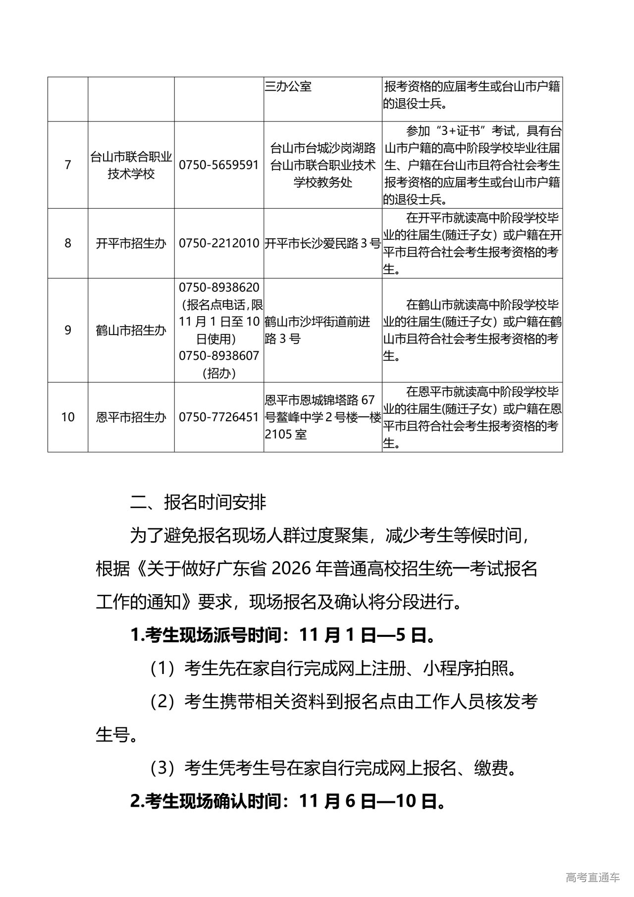 高考报名须考生本人现场报名和确认,为避免人群聚集,将进行分时段报考,具体安排详见《江门市2026年普通高考社会考生报名工作指引》。