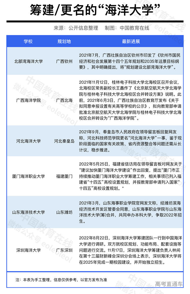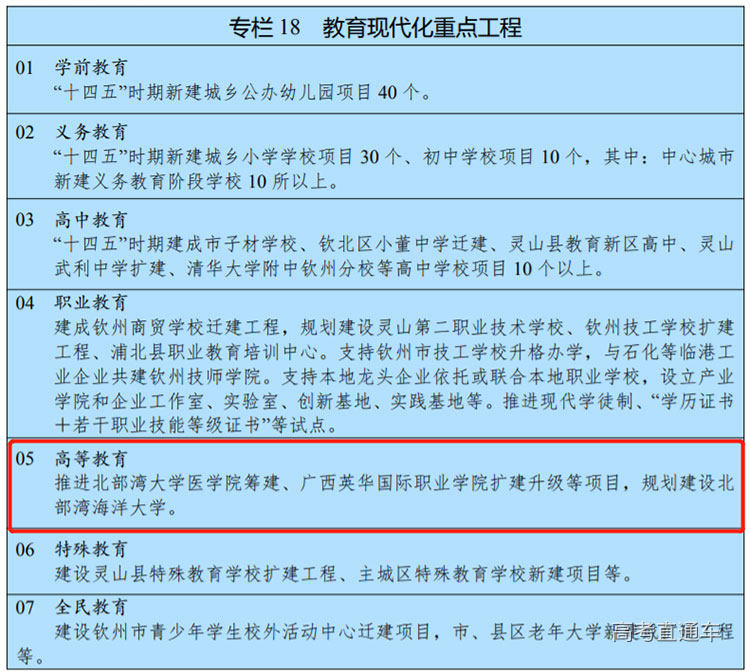 2021年7月,广西钦州市印发“十四五”规划,明确提出将“规划建设北部湾海洋大学”。