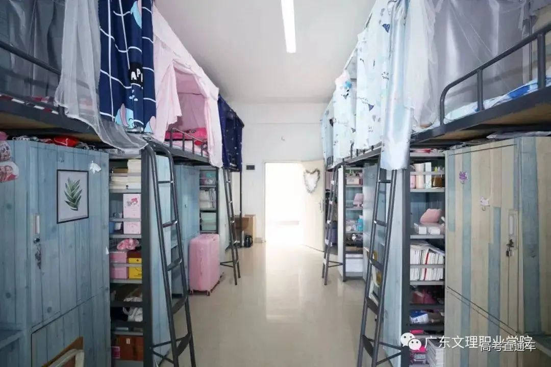 云浮校区宿舍:宿舍类型为六人间宿舍,均为上床下桌,学校采取公寓式宿舍管理,而且每栋宿舍楼都配备电梯,基础设施齐全。