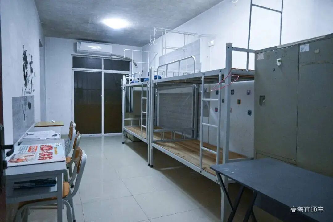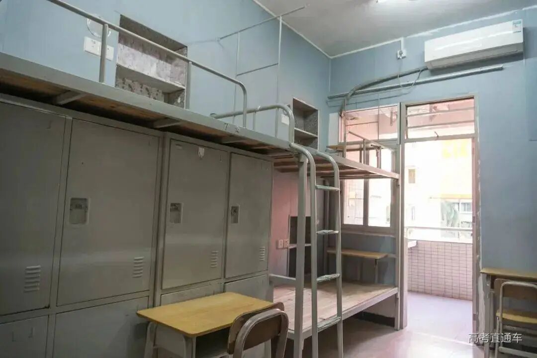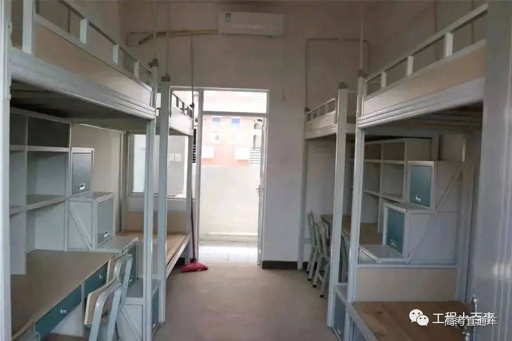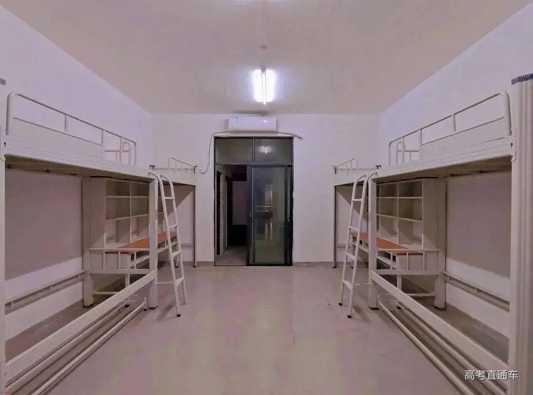 宿舍四人一间上床下桌,内置风扇及空调,居住环境相对舒适。