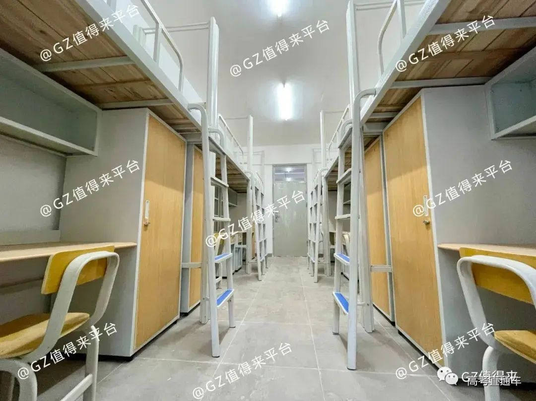 江门校区都是统一6人间,配有电梯,阳台还能望到江景,天河校区宿舍8人~10人,每一层都有提供洗衣机。 学生宿舍有A、B、C、D、E、F六栋,大多是六人间。宿舍分别配置有书桌椅,储物柜,独立阳台,洗漱台,两台风扇,卫生间里安装有蓝牙智能热水器,有花洒。 标准四人间,上床下桌,独立卫浴、热水器、空调、风扇、饮水机。 学校宿舍有四人间和六人间,上床下桌,所有宿舍都有吊扇、空调和电梯,有独立卫生间、浴室和阳台。 共有燕岭、五山、龙洞、天平架、花都、海珠6个校区,空调覆盖。 每间宿舍都有配备空调,个别楼层6人间分为上下床,4人间均为上床下桌,8人间-12人间分别有上床下桌和上下床。