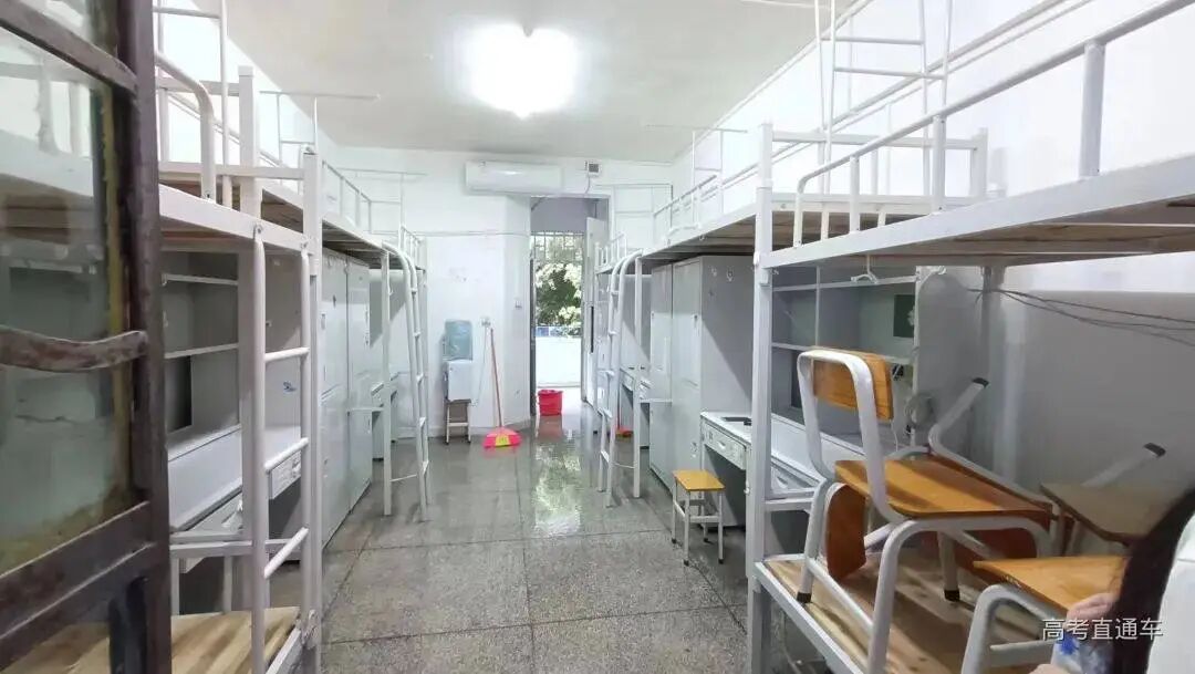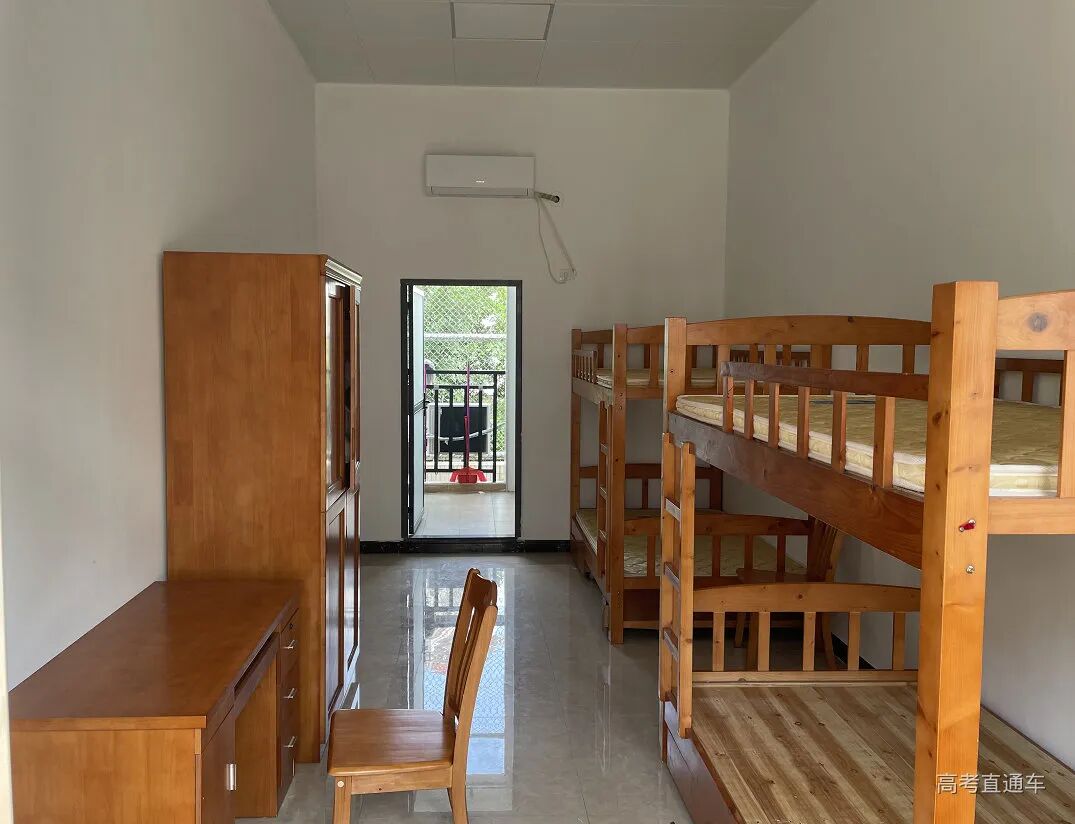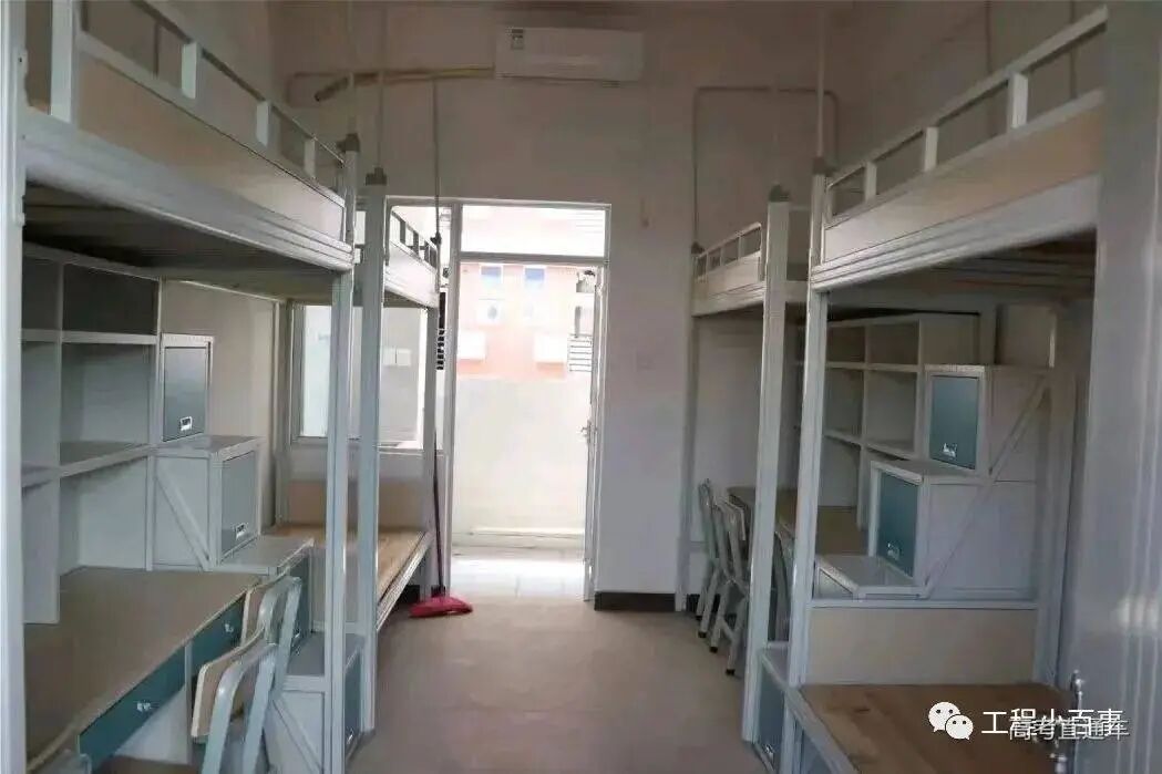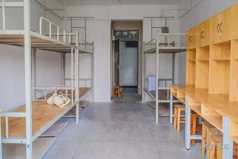 6人间,上床下桌、带空调。每间宿舍都配备空调和风扇,卫生间干湿分离。