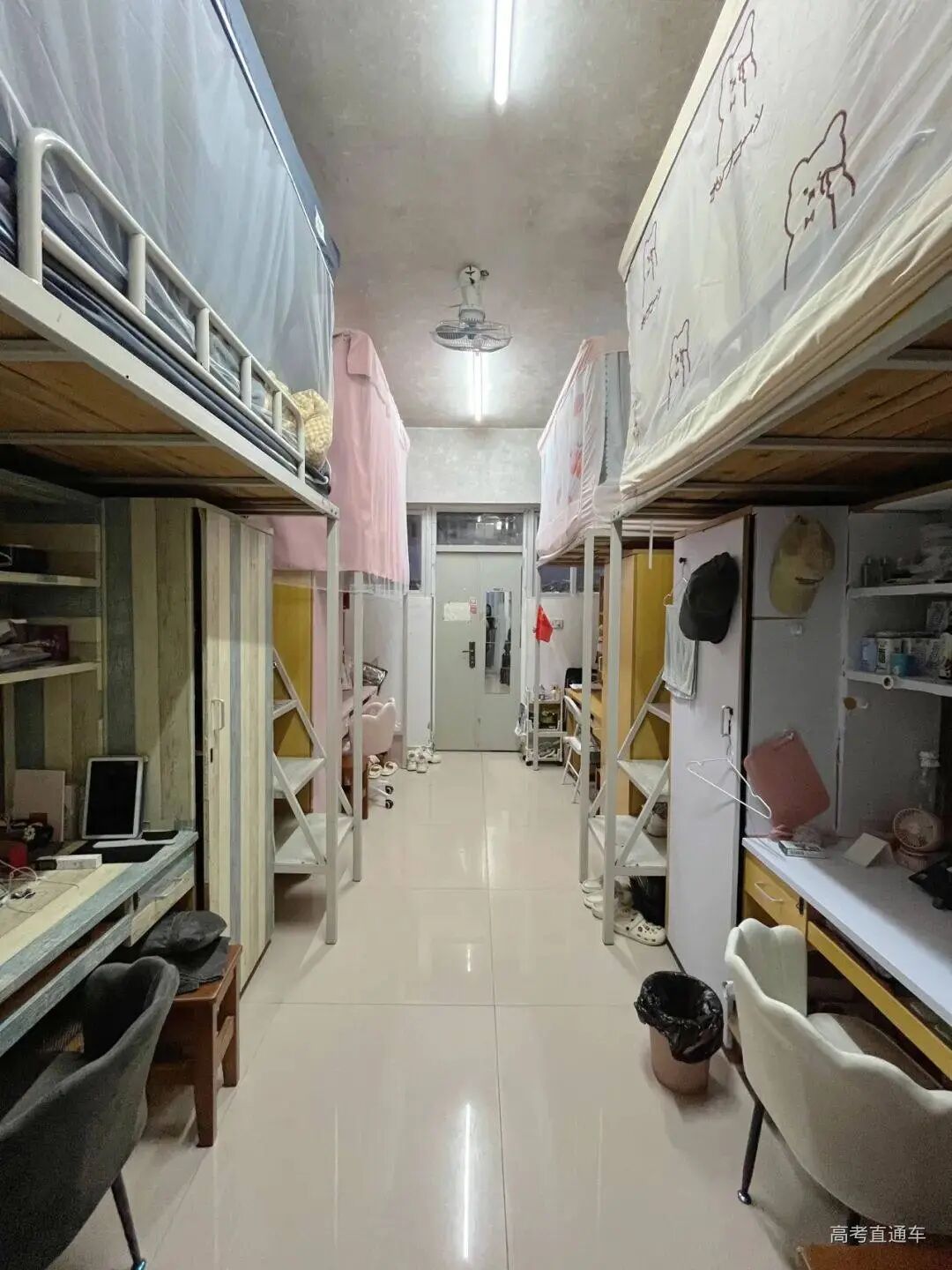 都校区是统一的6-8人间,上下床的布局,其他设施应有尽有。