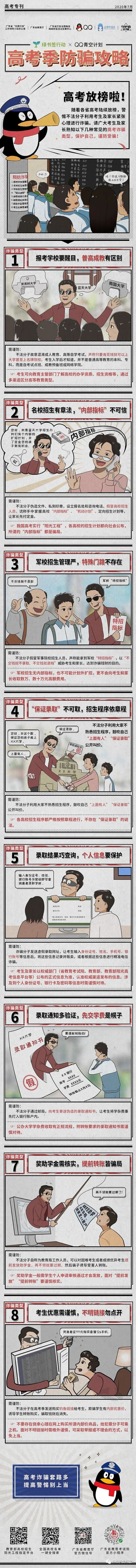 为深入开展“绿书签2020”网络安全系列宣传活动,广东省“扫黄打非”工作领导小组办公室、广东省教育厅、广东省打击治理电信网络新型违法犯罪中心联合腾讯QQ、企鹅伴成长、守护者计划共同开展暑期安全教育,推出《高考季防骗攻略》,通过盘点高考季网络诈骗的惯用类型,向广大考生及家长普及网络防骗知识。跟着下面的漫画一起来学习吧~