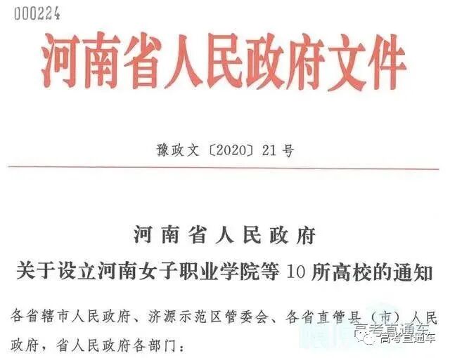 经河南省政府第68次常务会议研究,同意设立河南女子职业学院、林州建筑职业技术学院、南阳科技职业学院、河南对外经济贸易职业学院、濮阳石油化工职业技术学院、郑州电子商务职业学院、郑州轨道工程职业学院、郑州体育职业学院、兰考三农职业学院和汝州职业技术学院。现将有关事项通知如下: