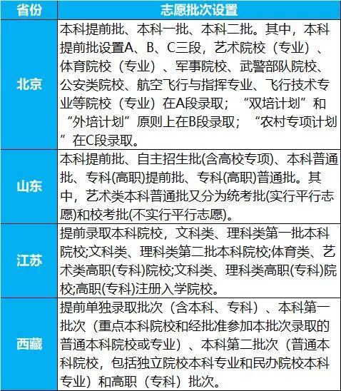 不同省份,可以根据当地的需求,设定不同的录取批次,以2018年部分省份录取批次设置为例: