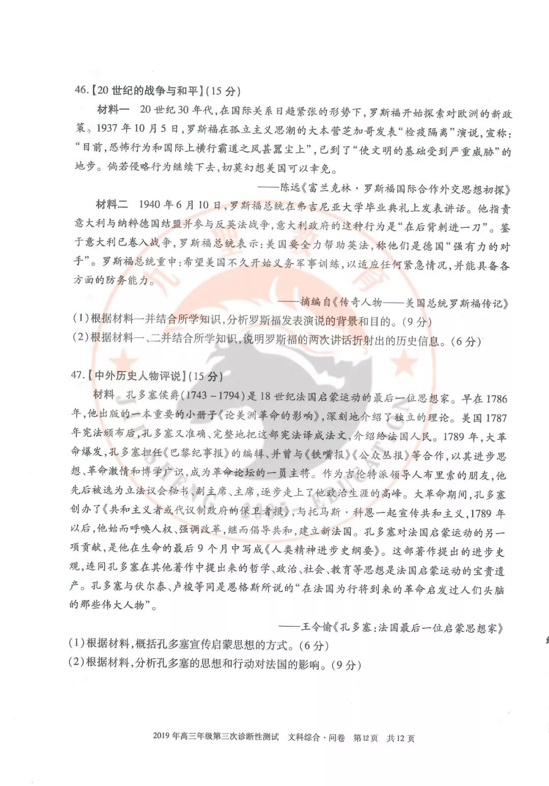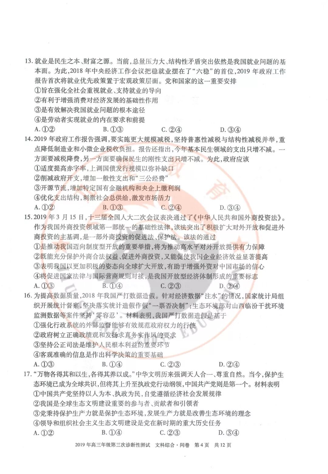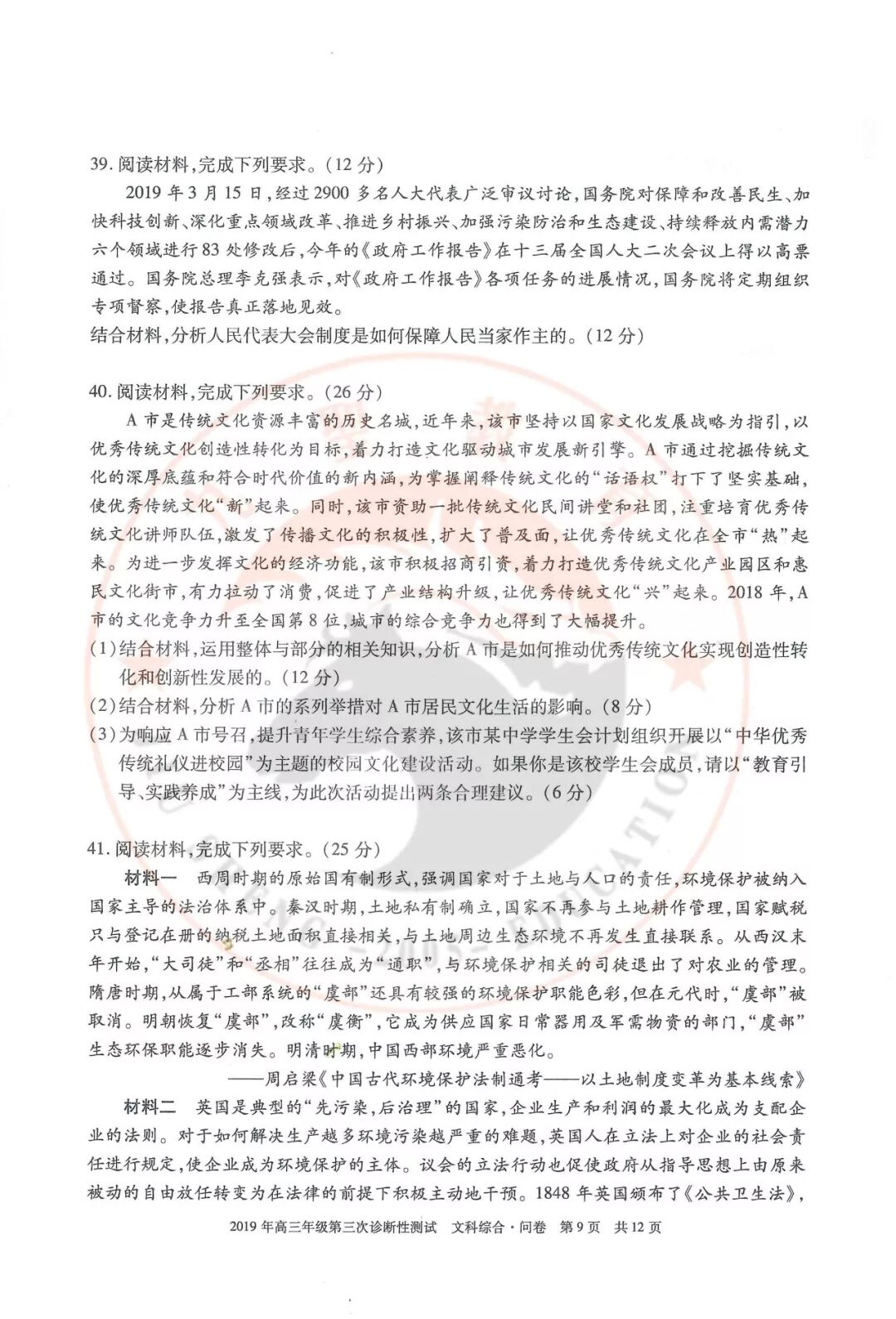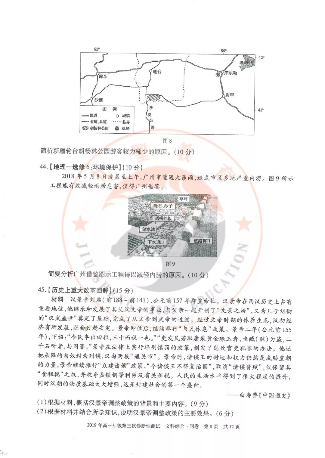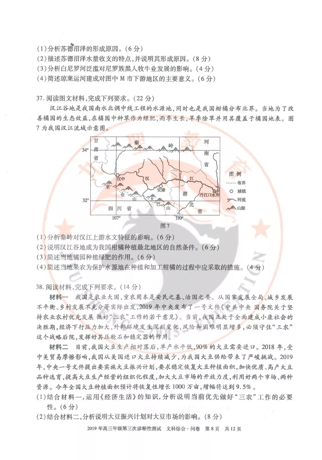 2019新疆高三年级第三次诊断性测试文综试题及参考答案-试题详情