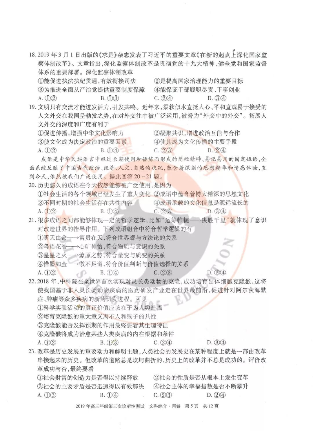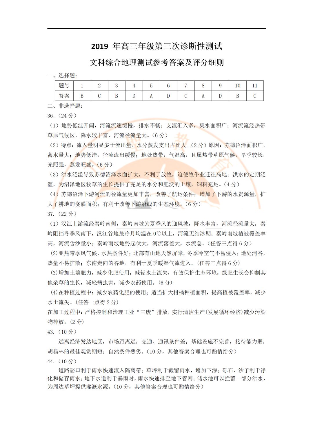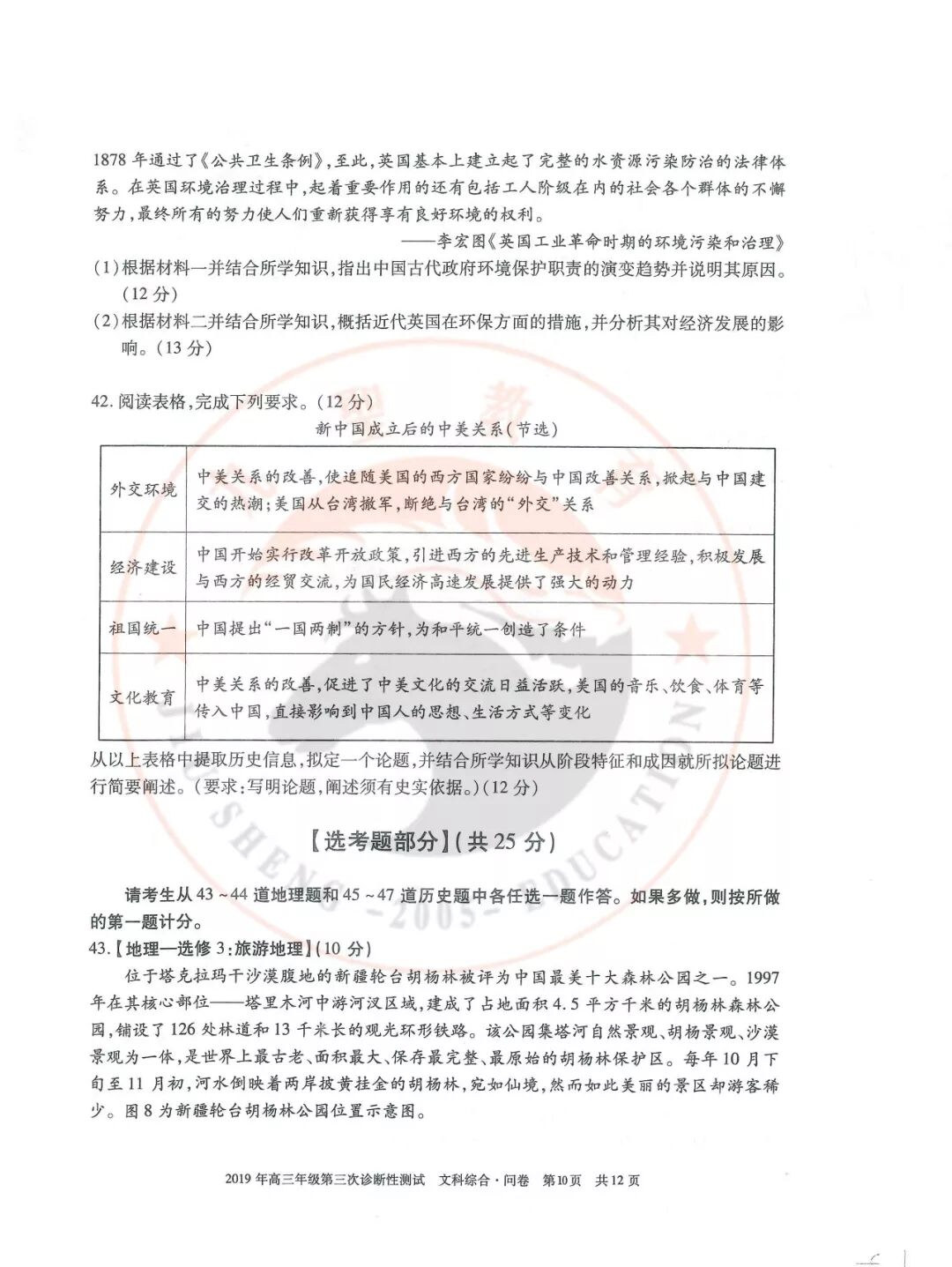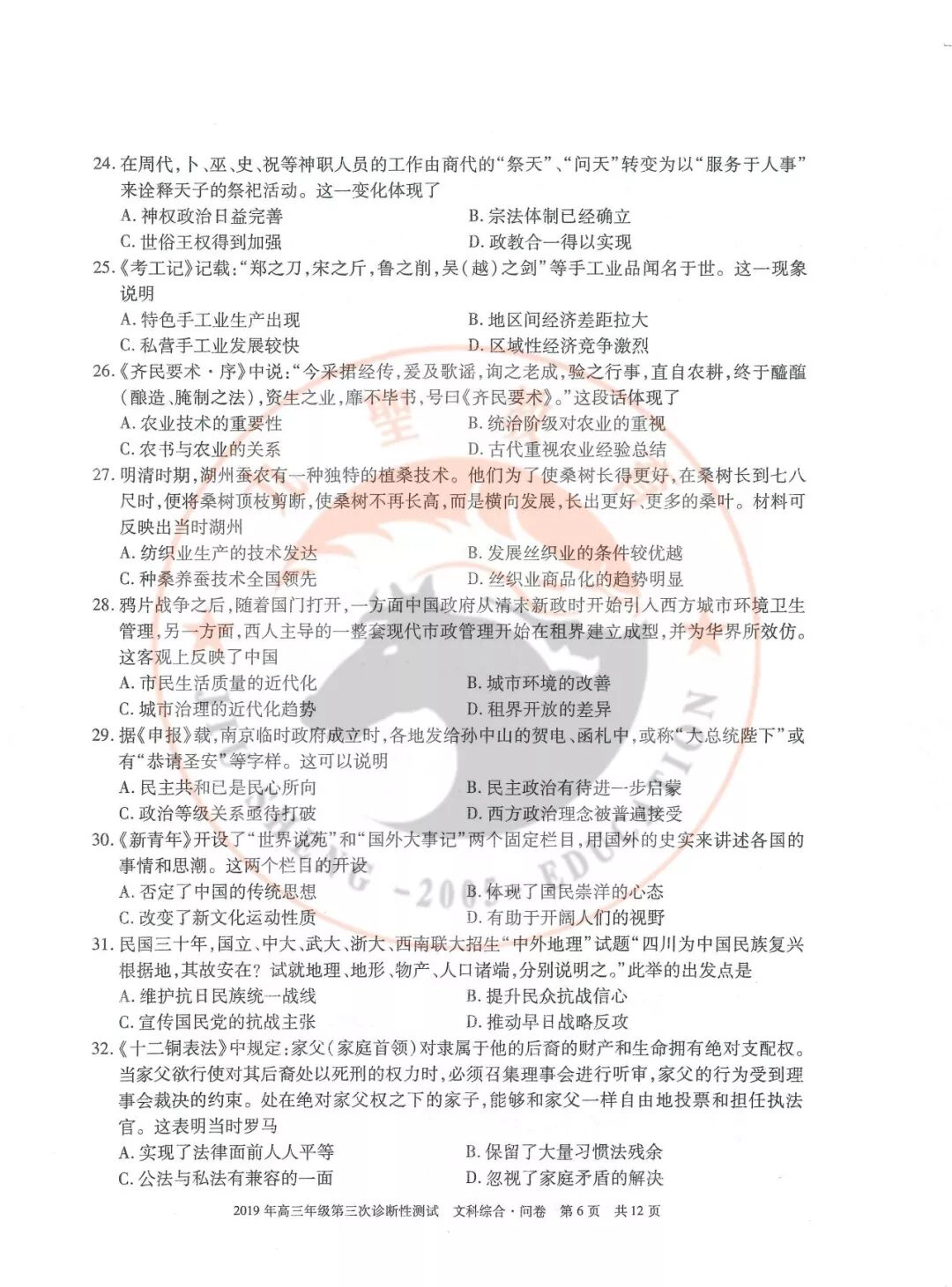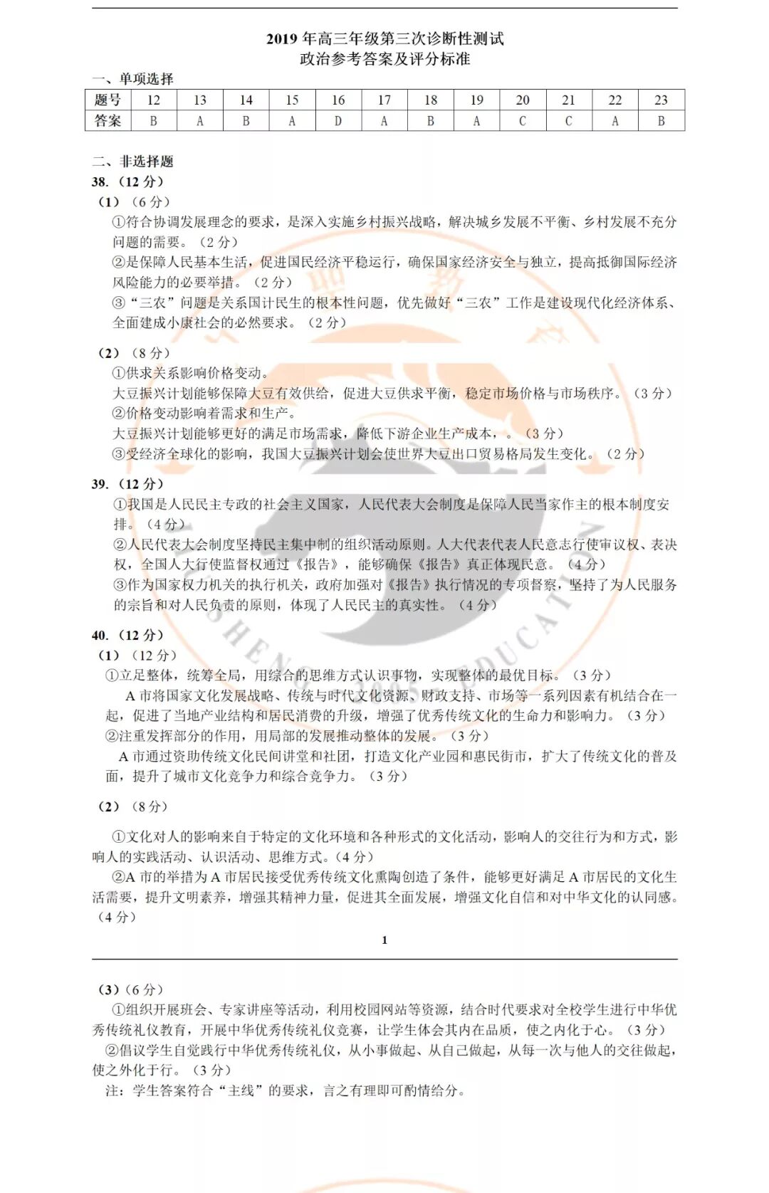 2019新疆高三年级第三次诊断性测试文综试题及参考答案-试题详情
