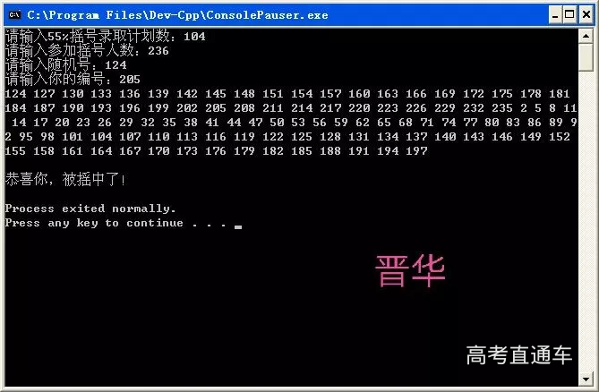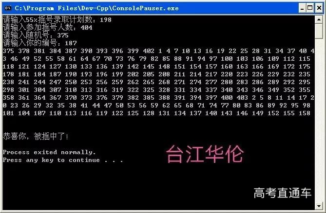 (3)第二位录取的学生为第一位录取学生的随机编号+等差数,第三位录取的学生为第二位录取学生的随机编号+等差数,第四位录取的学生为第三位录取学生的随机编号+等差数,以此类推,直至完成摇号录取计划数为止。