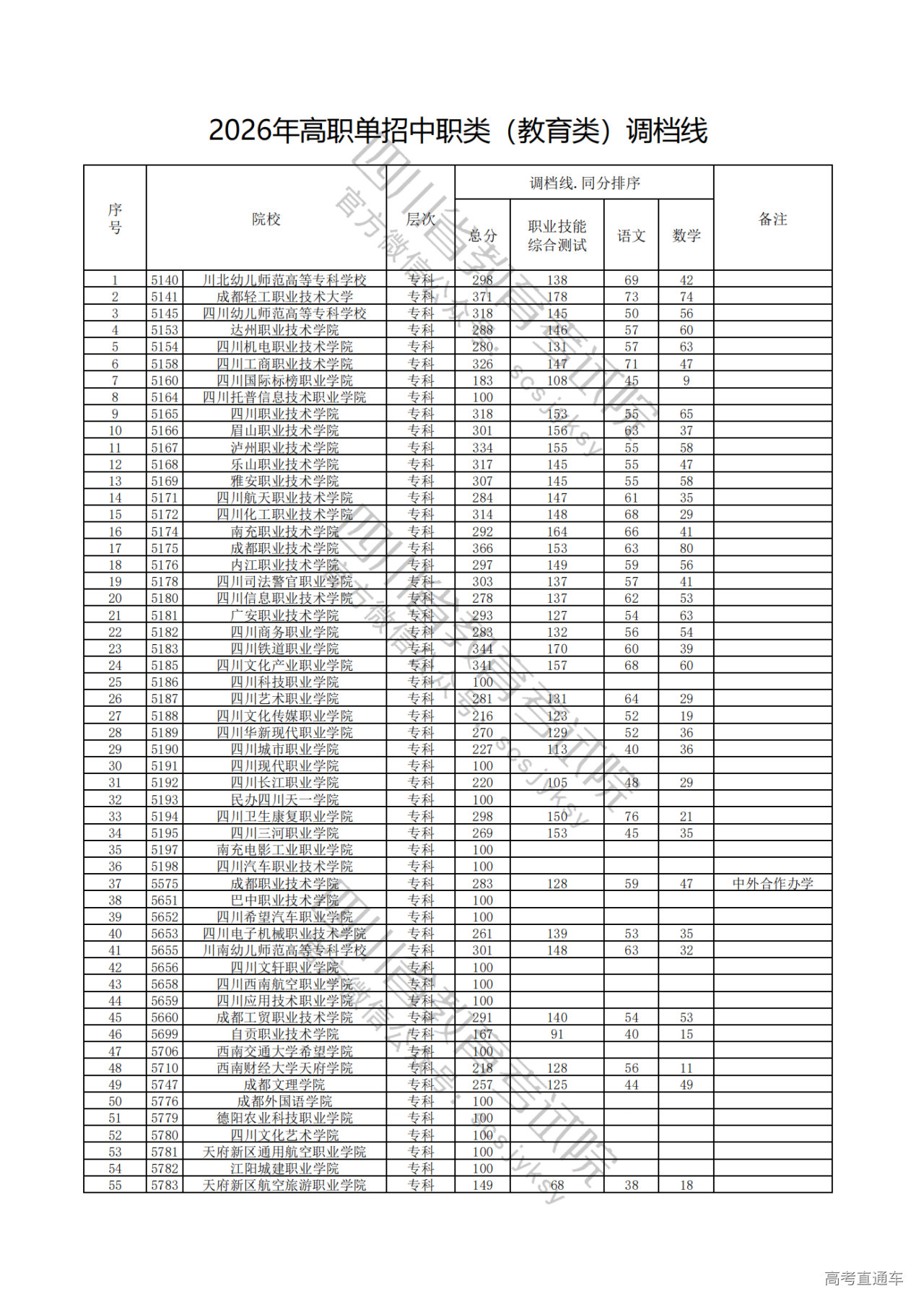 四川省2026年高职单招中职类(教育类)调档线