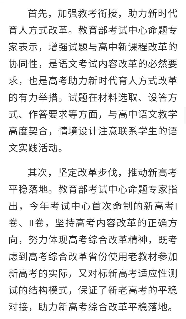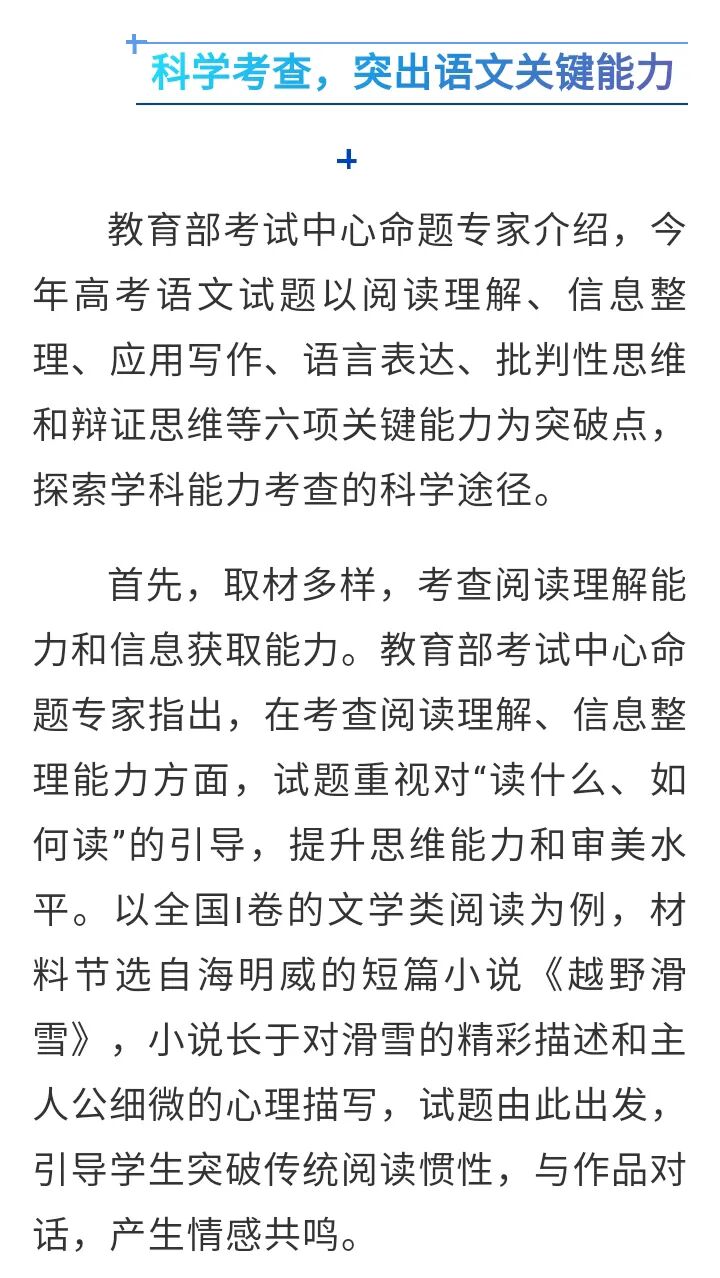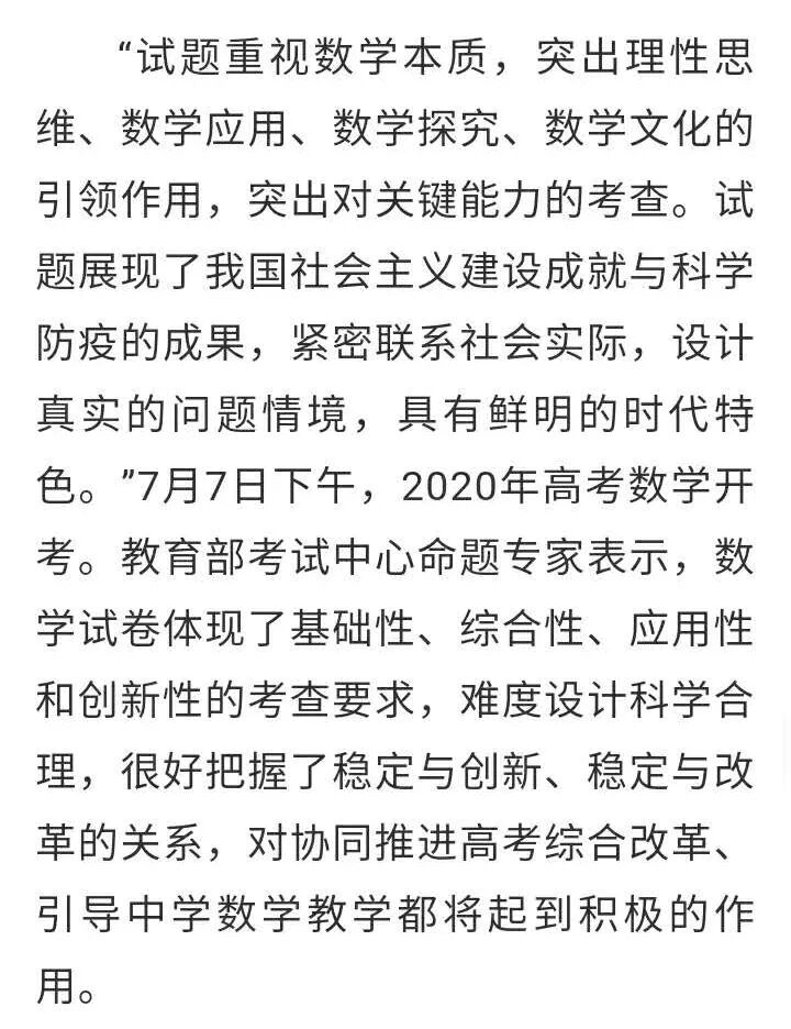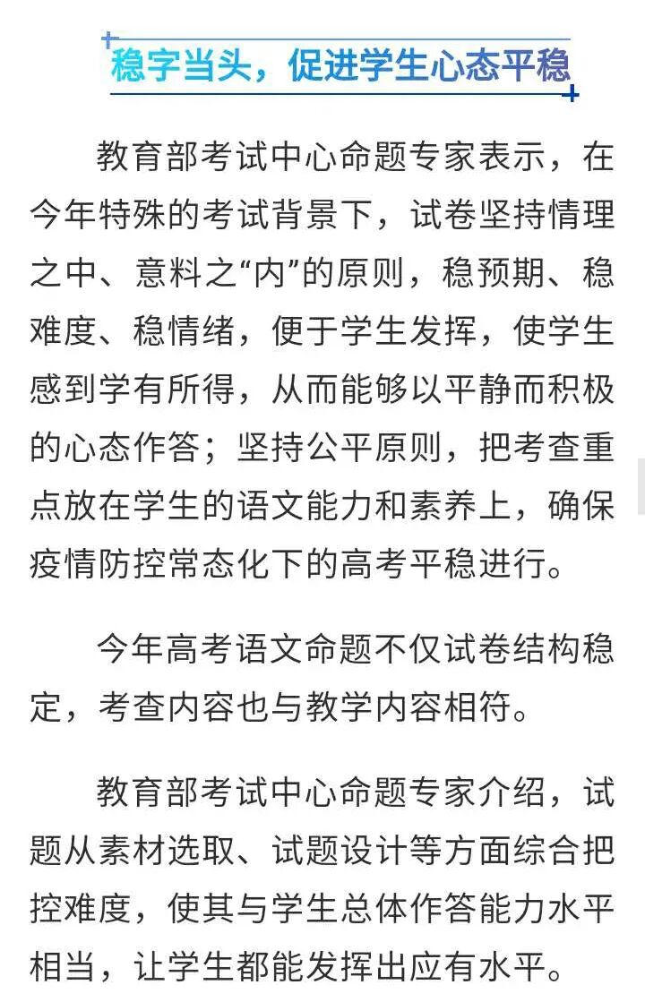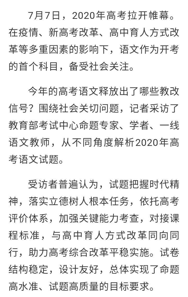 教育部考试中心命题专家解析2020年高考语文、数学试题