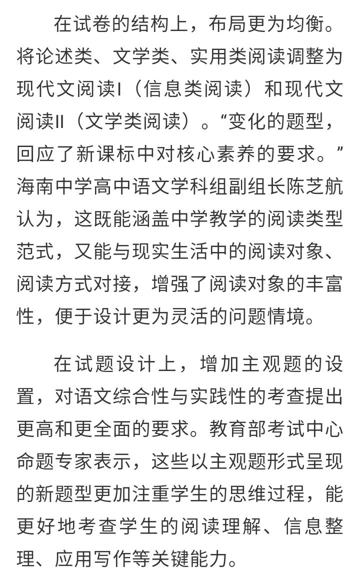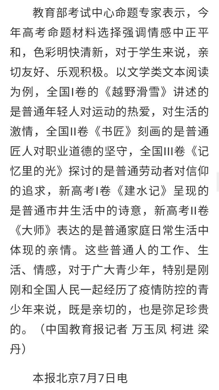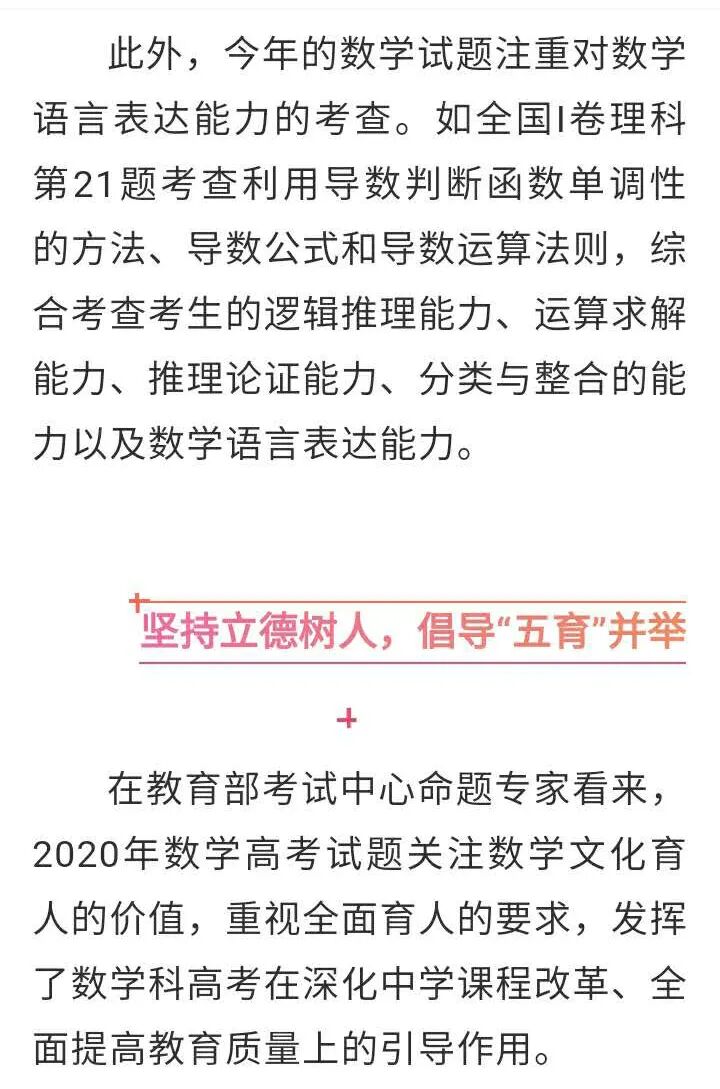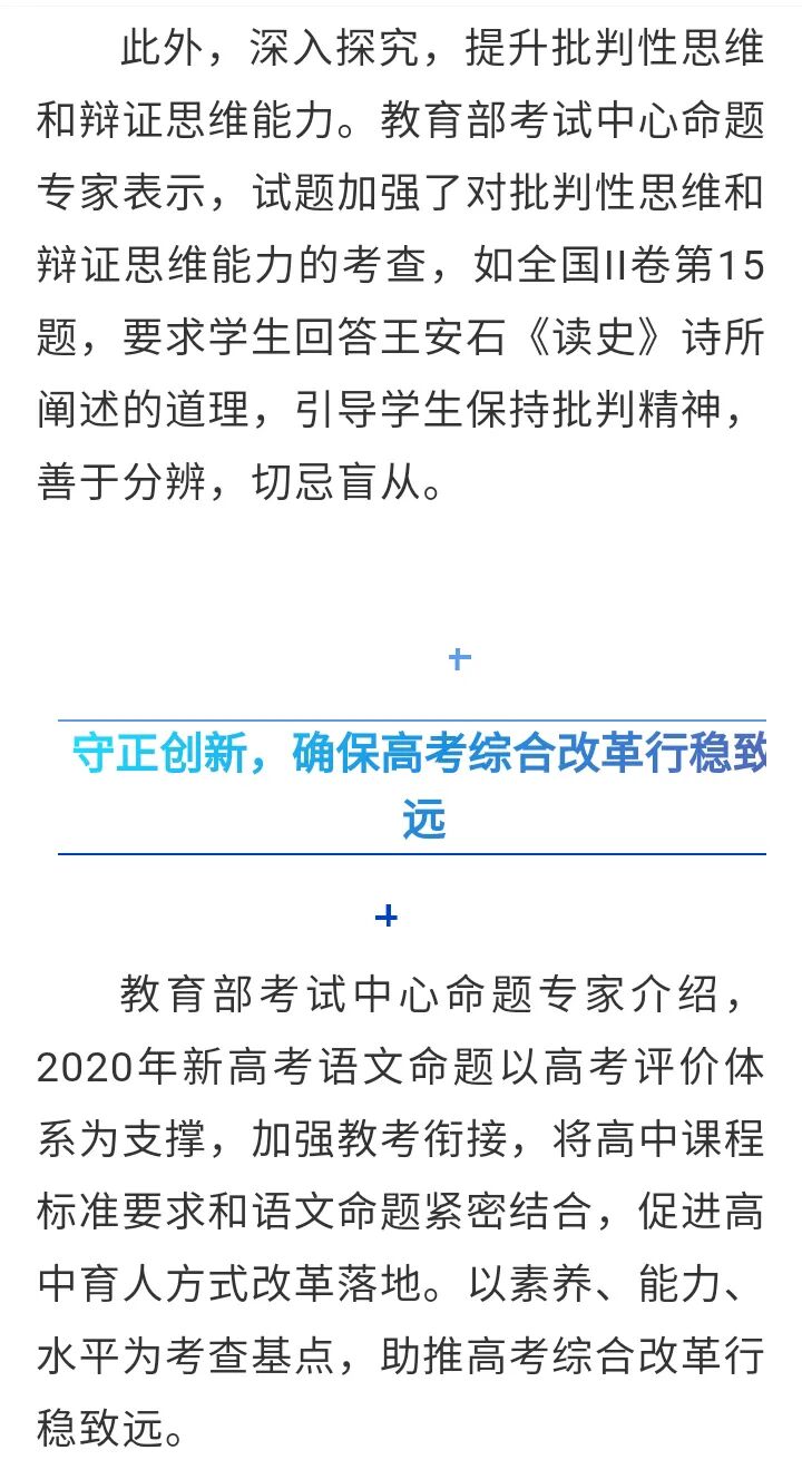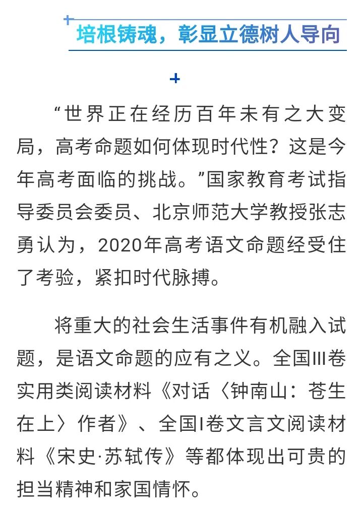 教育部考试中心命题专家解析2020年高考语文、数学试题