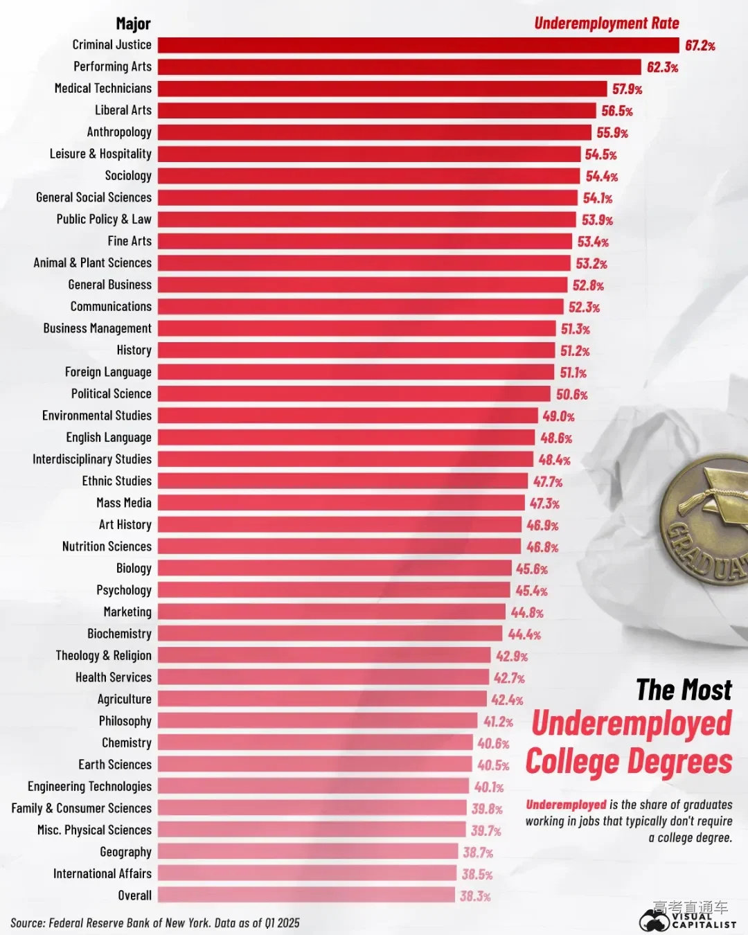 前十里面三个“arts” ,还有社会学+人类学这一对天坑。
