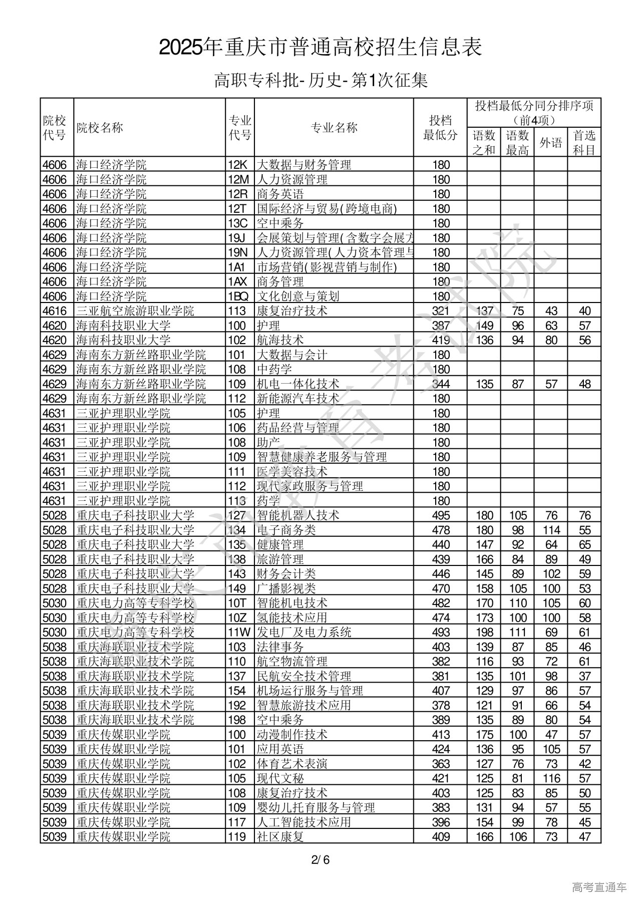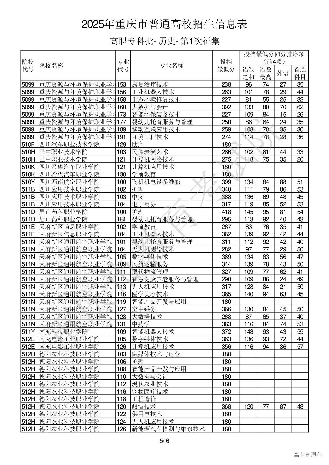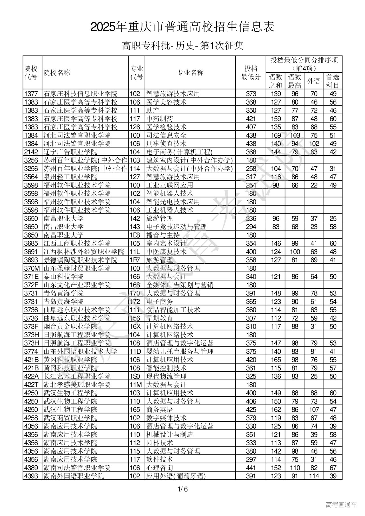 2025年重庆市普通高校招生信息表 高职专科批-历史-第1次征集.pdf
