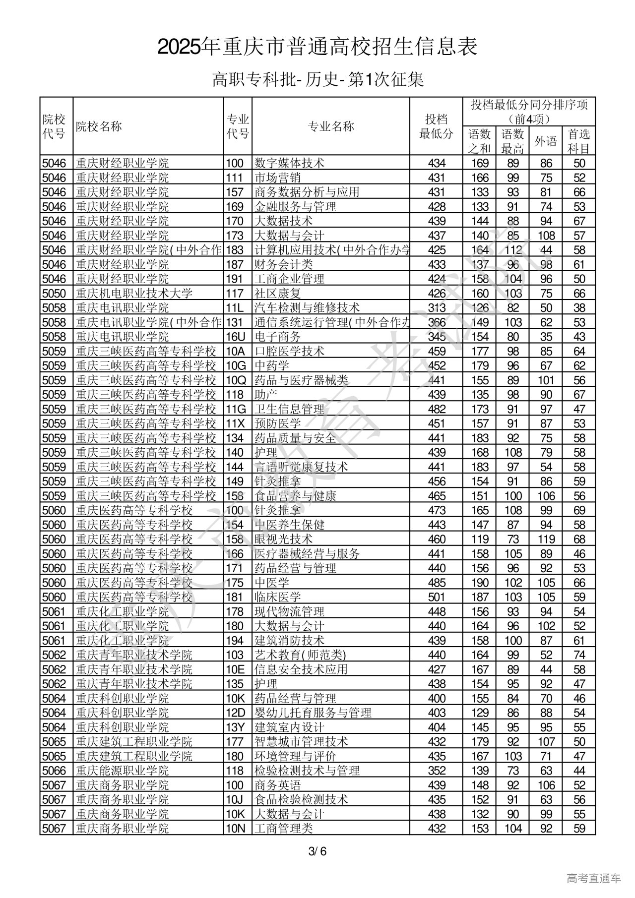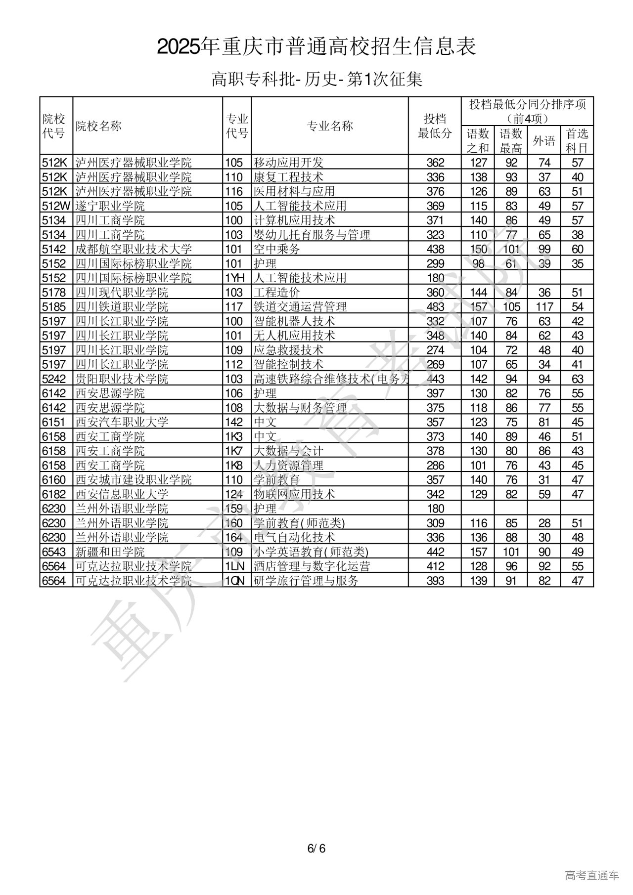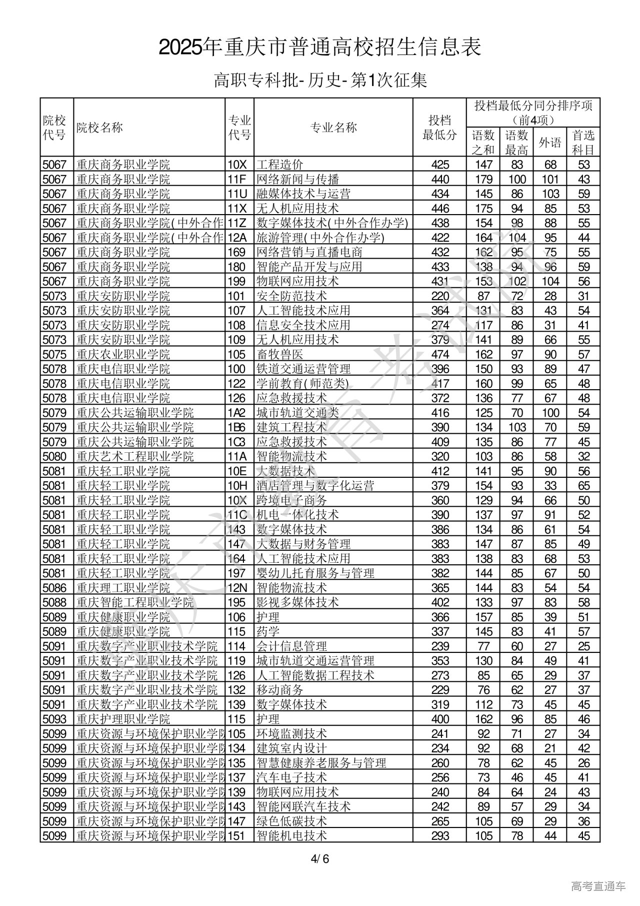 2025年重庆市普通高校招生信息表 高职专科批-历史-第1次征集.pdf