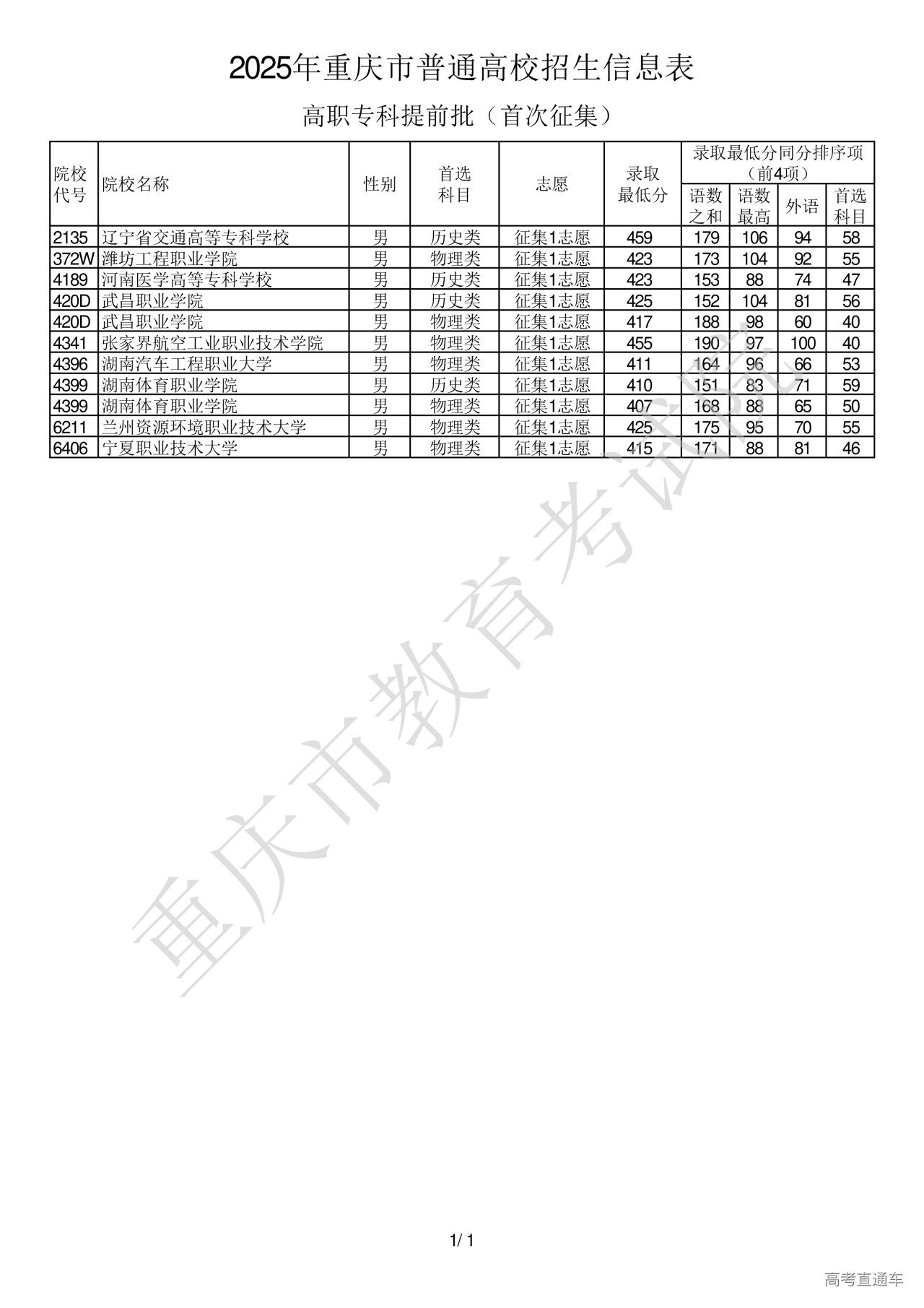 2025年重庆市普通高校招生信息表-高职专科提前批(首次征集).pdf