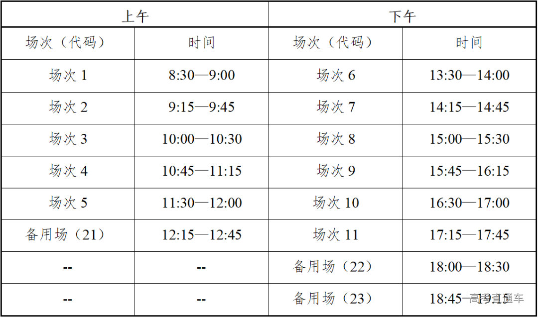 英语四级口语考试(CET-SET4)考试时间为5月18日(F241次),英语六级口语考试(CET-SET6)考试时间为5月19日(S242次),具体场次安排如下: